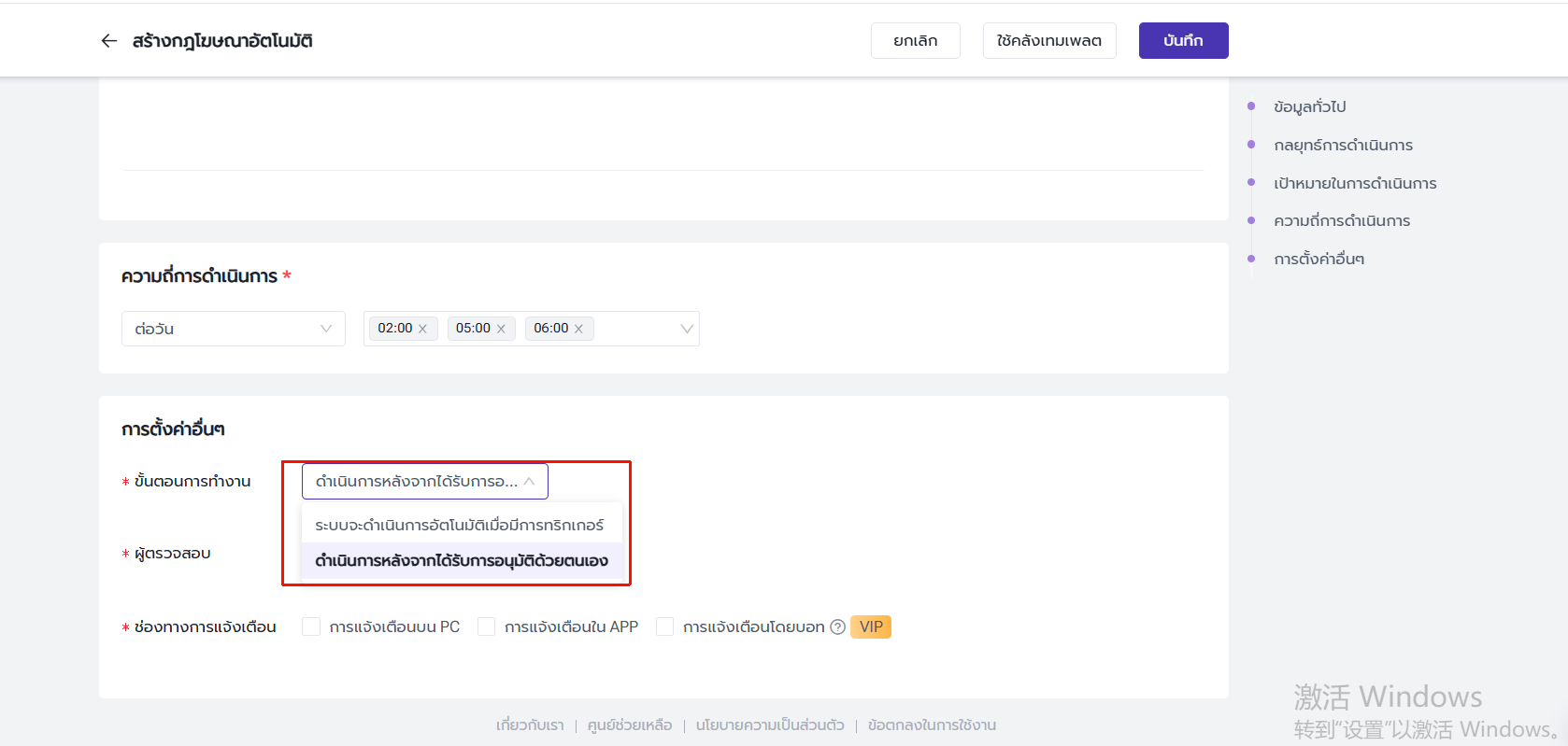 1. สร้างกฎอัตโนมัติตามเทมเพลต