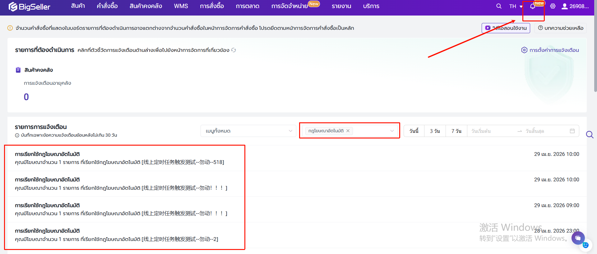 ตั้งค่าช่องทางการแจ้งเตือน โดยผู้ใช้งานสามารถกำหนดว่า เมื่อโฆษณาตรงตามเงื่อนไขในกฎอัตโนมัติที่ตั้งไว้ ระบบจะส่งการแจ้งเตือนผ่าน PC และแอป BigSeller
