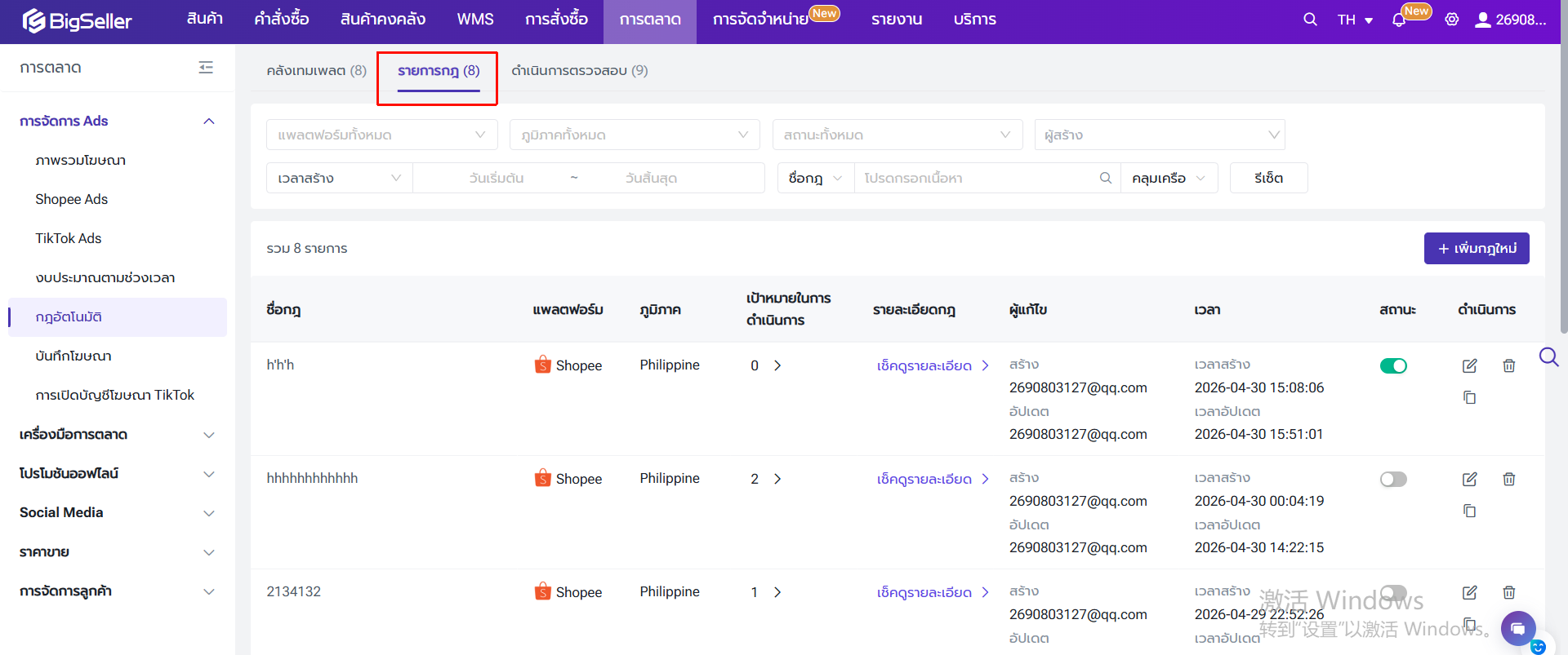 หลังจากบันทึกกฎอัตโนมัติแล้ว สามารถตรวจสอบกฎที่สร้างไว้ในเมนู "รายการกฎ" ได้