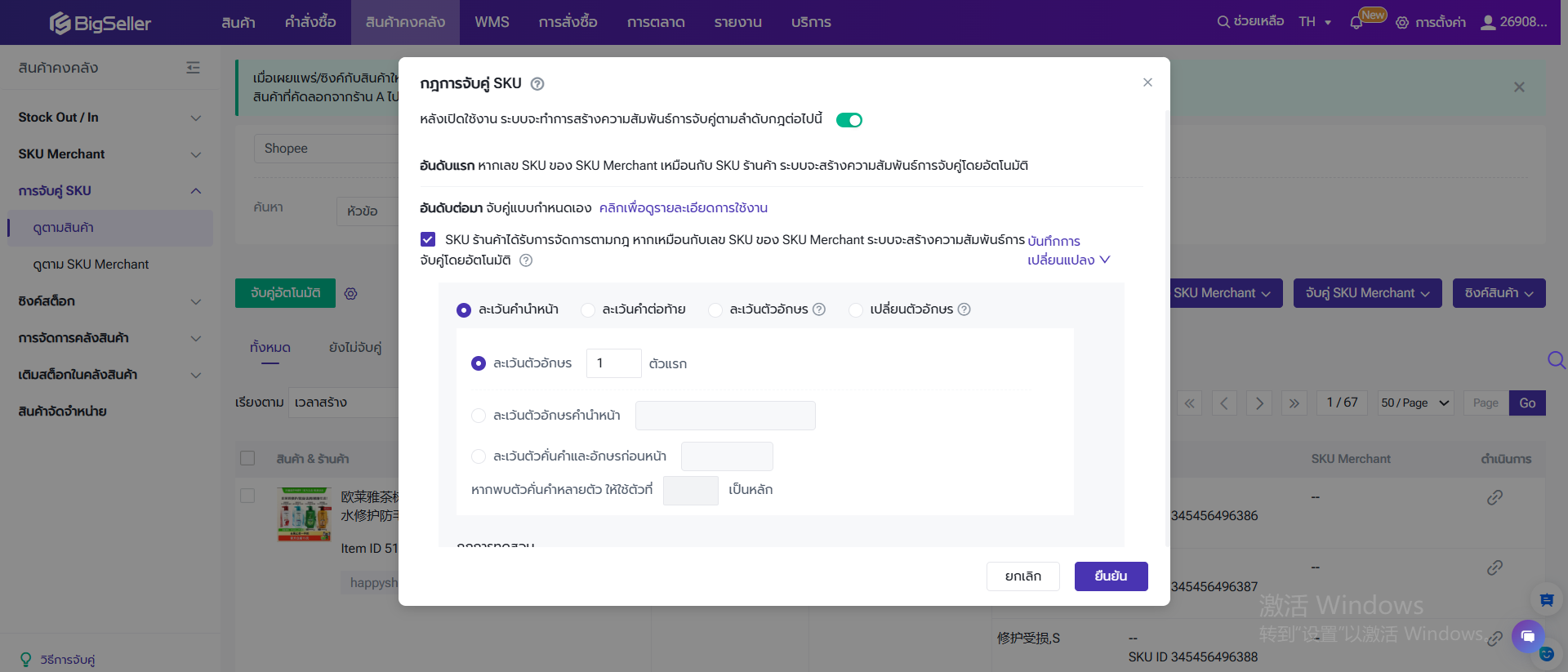 👉คลิกที่นี่เพื่อดูวิธีการใช้ฟังก์ชันกฎการจับคู่ SKU