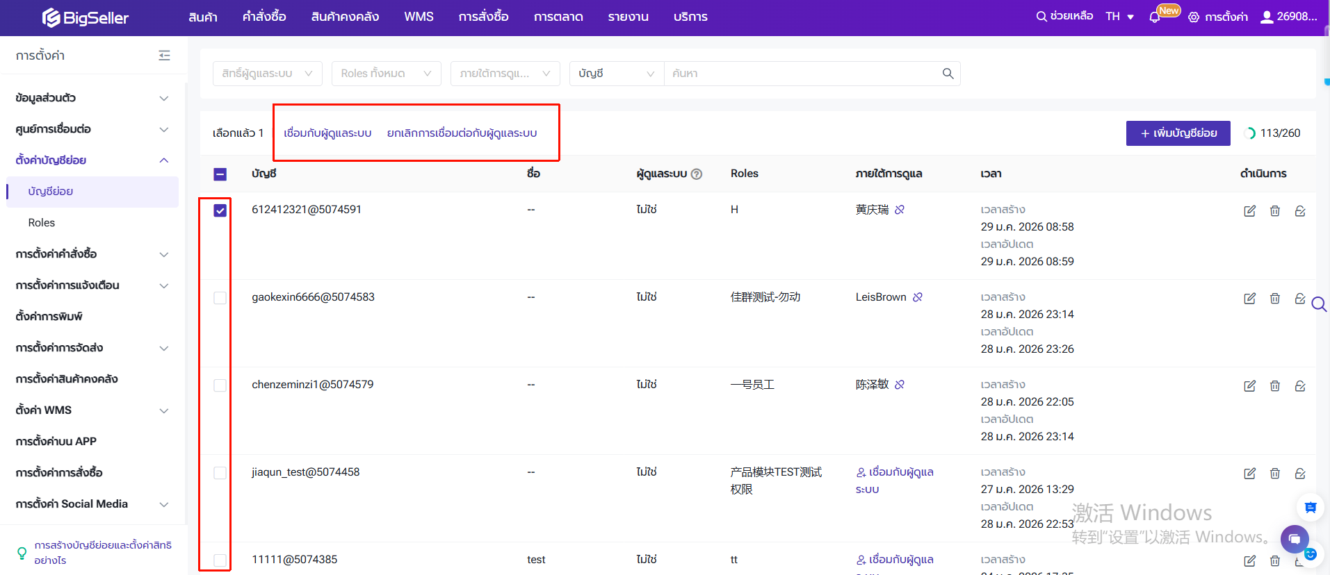 บัญชีหลักสามารถดำเนินการเชื่อมต่อหรือยกเลิกการเชื่อมต่อระหว่างบัญชีผู้ดูแลระบบและบัญชีย่อยได้