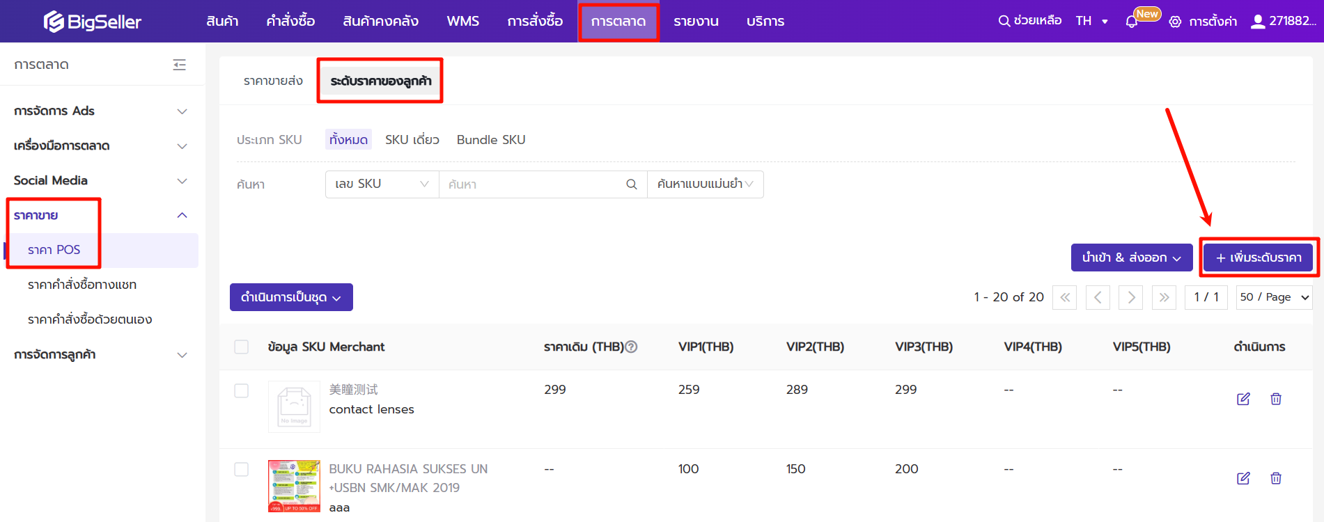 คุณยังสามารถแก้ไขราคา SKU Merchant สำหรับแต่ละระดับ VIP ของลูกค้าเป็นชุดได้ ช่วยตั้งค่าราคาอย่างรวดเร็ว