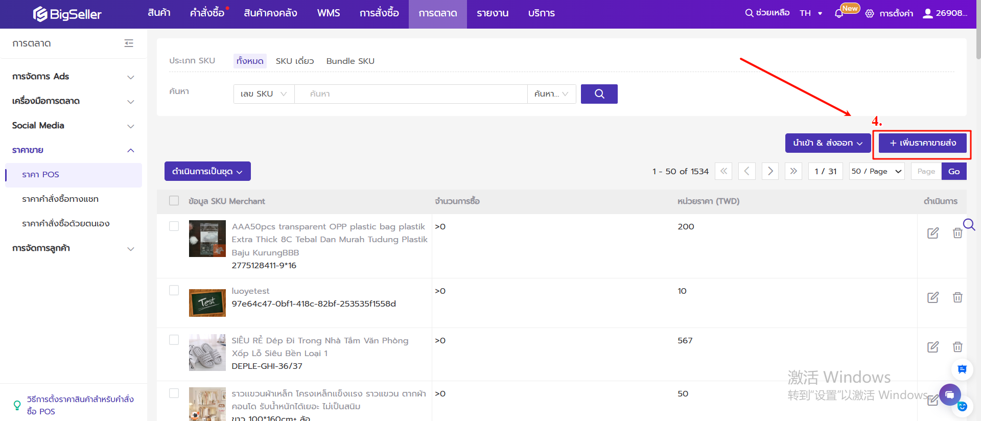 1. ขอแนะนำให้คุณ เพิ่มร้านค้า ของคำสั่งซื้อ POS และเลือกร้านค้าเมื่อสร้างคำสั่งซื้อ เพื่อสะดวกในการค้นหารายงานสำหรับคำสั่งซื้อ POS ตามร้านค้า (การเพิ่มร้านค้าคำสั่งซื้อ POS ได้สูงสุด 1000 ร้าน)2. สามารถดตรวจสอบจำนวน SKU Merchant ในคลังสินค้าที่เชื่อมต่อกับร้านค้าของคำสั่งซื้อ POS ได้ (ซึ่งหมายความว่า สามารถเพิ่มจำนวนสต็อกของ SKU Merchant ในคลังที่หน้า "รายการสินค้าคงคลัง")