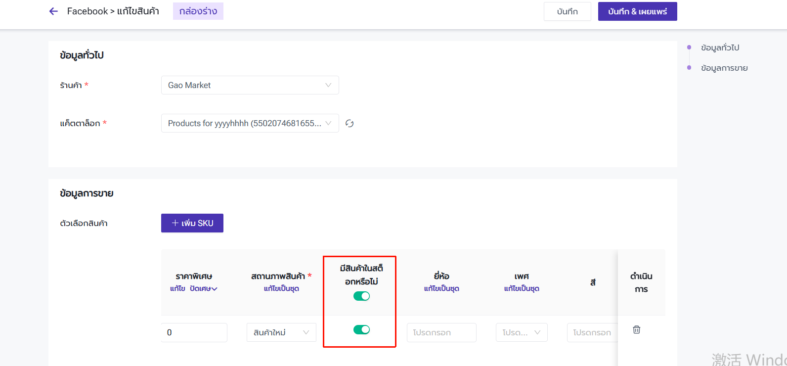 2. เผยแพร่สินค้าไปยัง Facebook