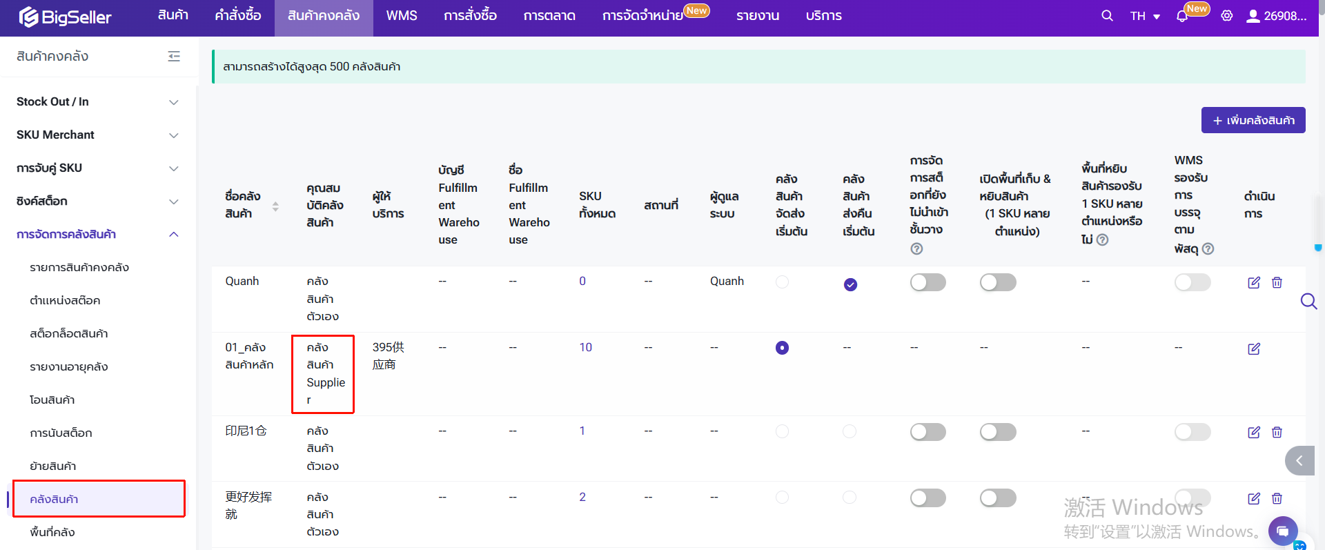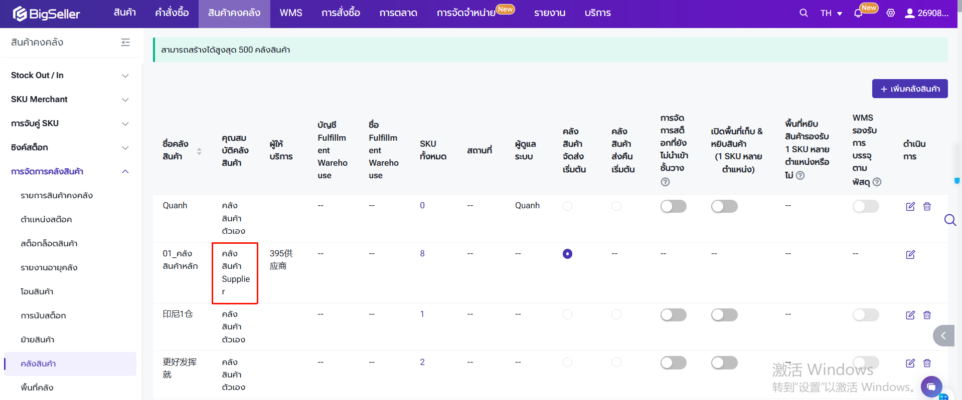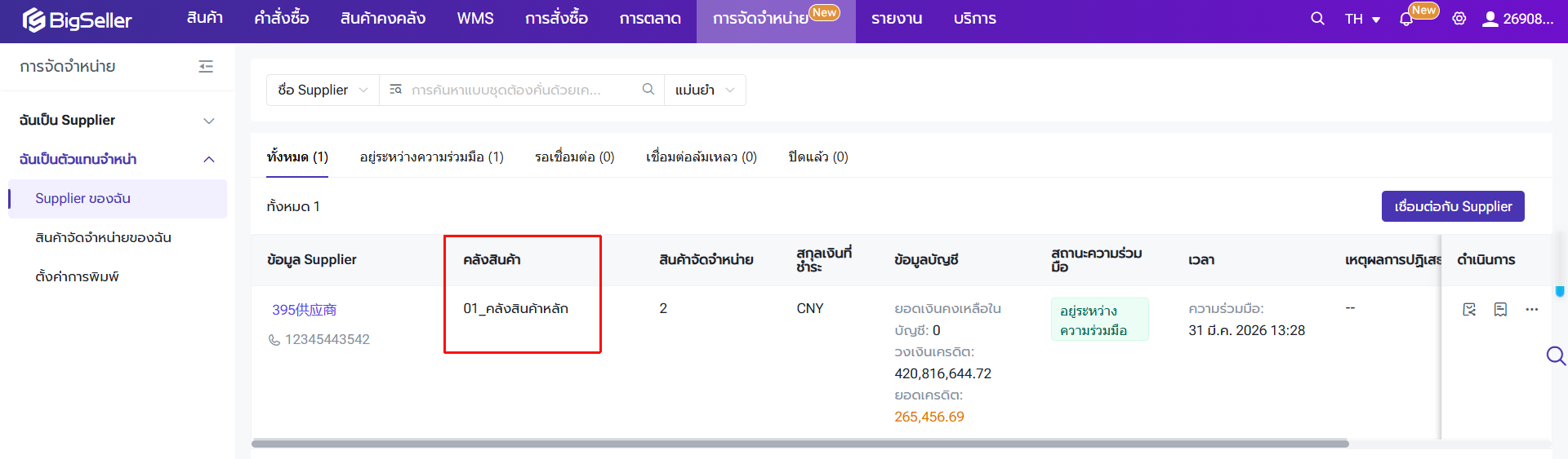 หลังจากสร้างความร่วมมือสำเร็จเป็นครั้งแรก ระบบจะสร้าง "คลังสินค้า Supplier" ในรายการคลังสินค้าของคุณโดยอัตโนมัติ เพื่อช่วยติดตามข้อมูลสต็อกสินค้าของ Supplier นั้น