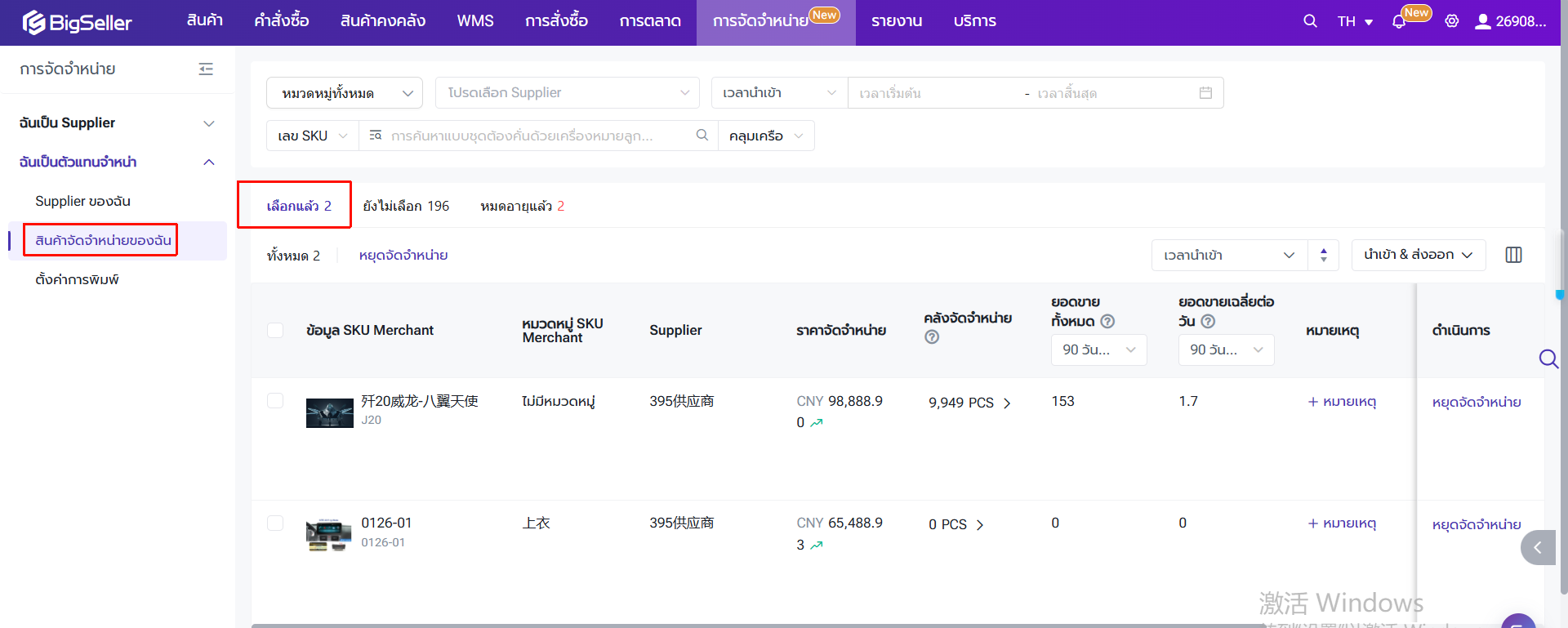 หลังจากสร้างความร่วมมือกับ Supplier สำเร็จ ไปยังเมนู "สินค้าจัดจำหน่ายของฉัน" เพื่อเลือกสินค้าจัดจำหน่าย