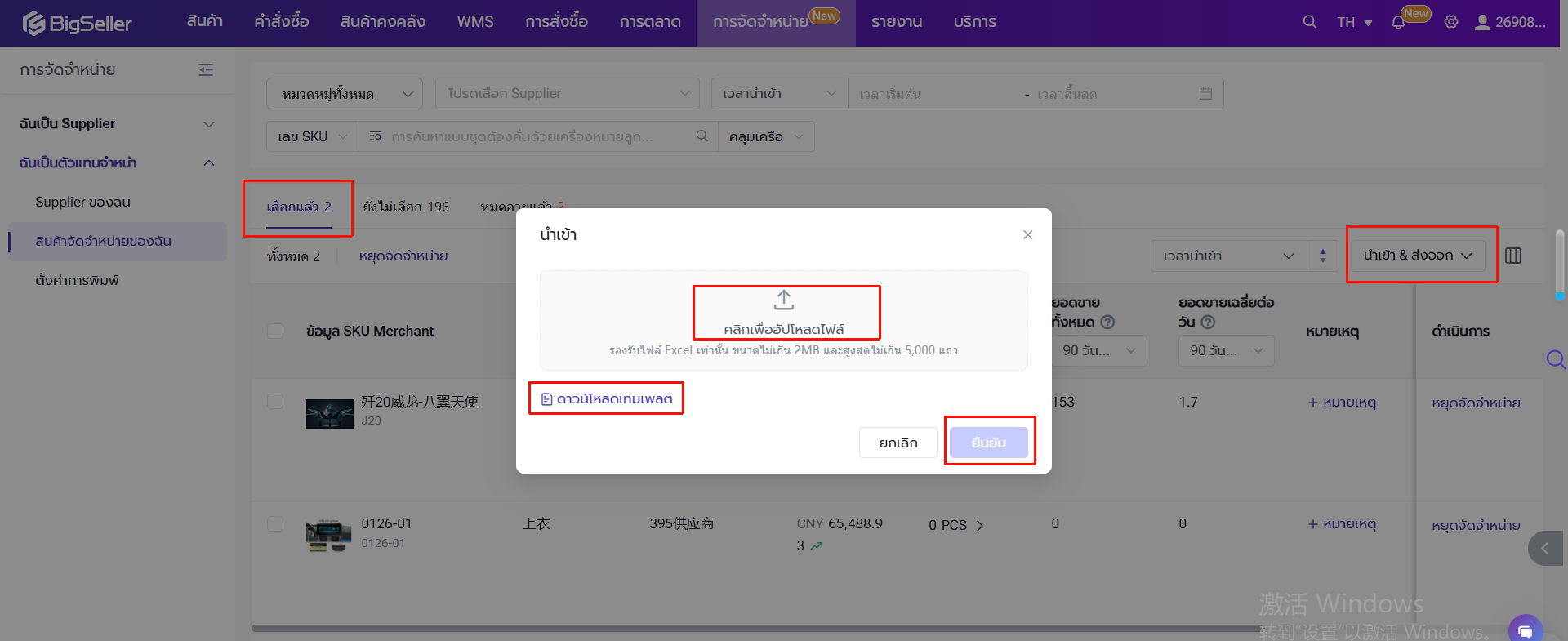 รองรับการนำเข้าสินค้าจัดจำหน่ายที่ยังไม่รับการเลือกผ่านไฟล์ Excel โดยสามารถใส่ข้อมูลสูงสุด 5,000 รายการต่อไฟล์