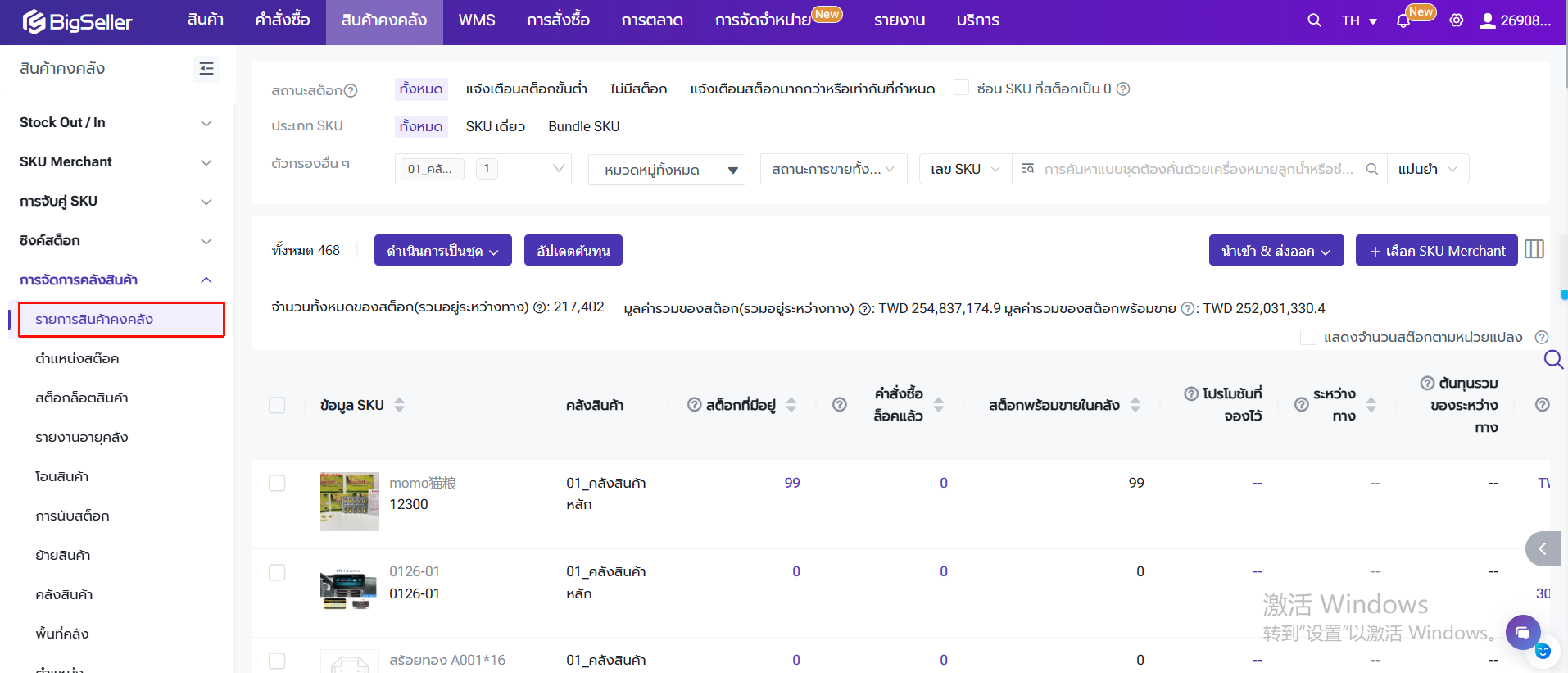 ผู้ใช้งานสามารถคลิกเพื่อเปิดหน้า "รายการสินค้าคงคลัง" กเพื่อตรวจสอบรายละเอียด แต่จะไม่สามารถแก้ไขสต็อกได้