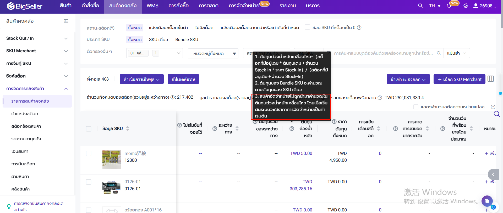 สินค้าจัดจำหน่ายไม่มีส่วนร่วมในการคำนวณต้นทุนถ่วงน้ำหนัก ค่าเริ่มต้นจะเป็นราคาจัดจำหน่ายของสินค้า