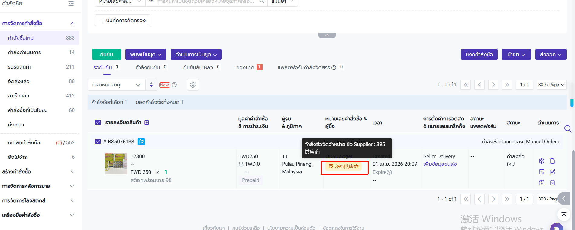 ◾ เมื่อ SKU หนึ่งรายการอยู่ในคลังสินค้าของ Supplier หลายราย ระบบจะอัปเดตคำสั่งซื้อนั้นให้กับ Supplier ตามข้อมูลคลังสินค้า