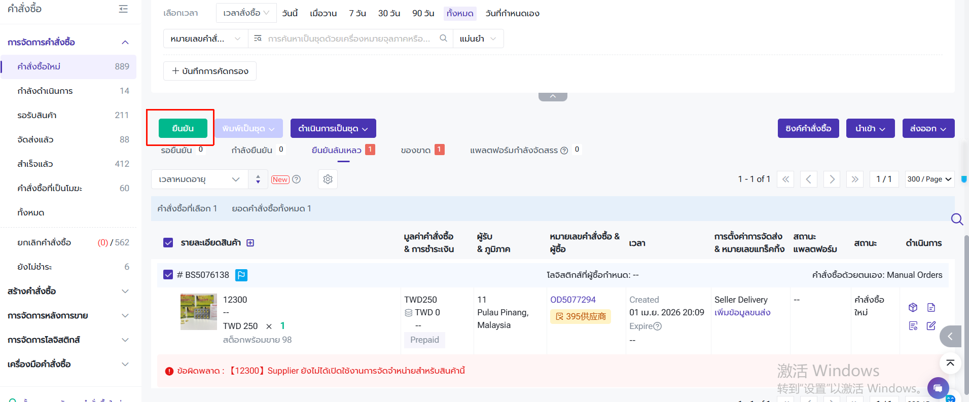 หากถอนล้มเหลว กรุณาติดต่อ Supplier เพื่อให้จัดการคำสั่งซื้ออย่างทันท่วงที