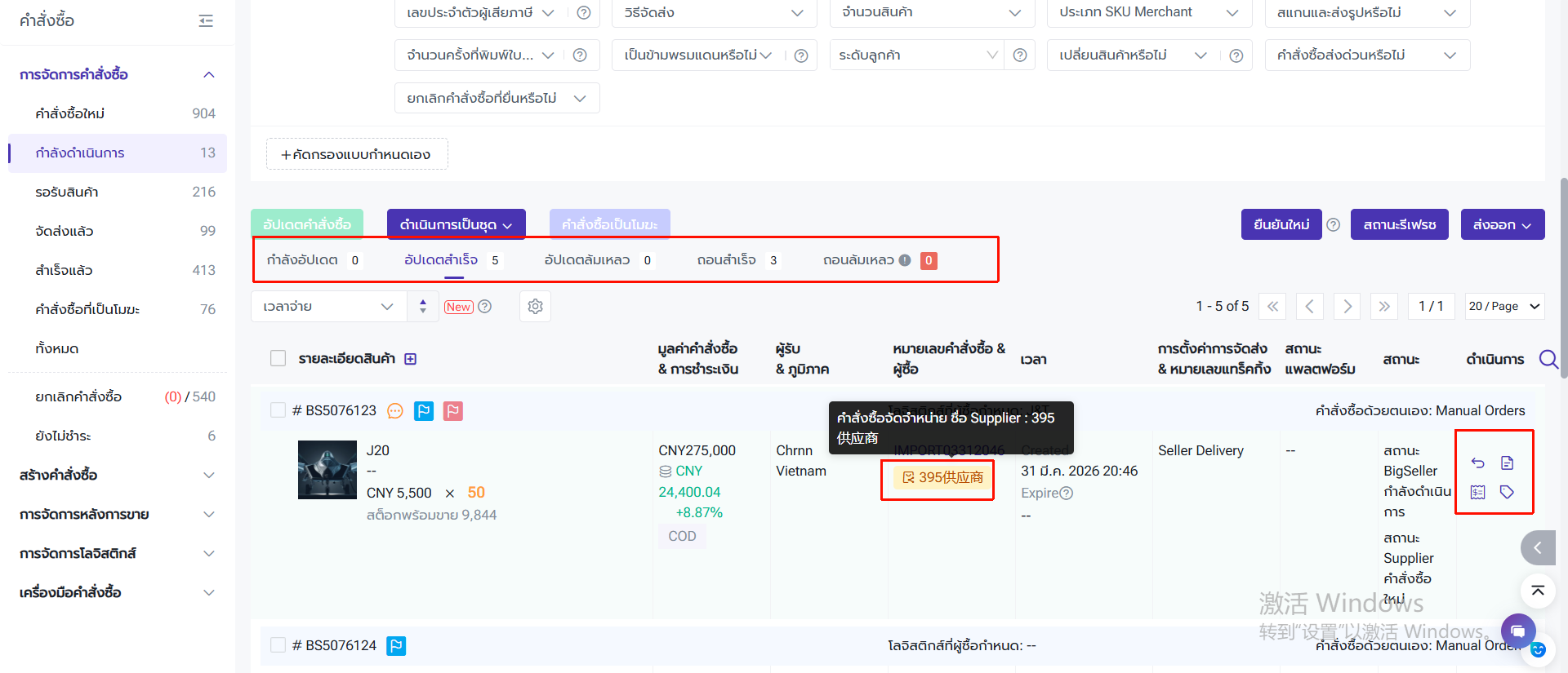 | กำลังอัปเดต | กำลังอัปเดตคำสั่งซื้อ Supplier ยังไม่ยืนยัน |