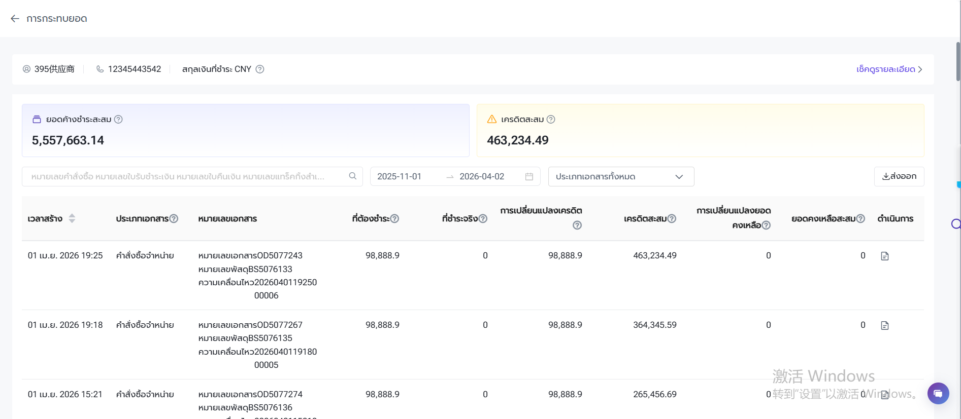รายละเอียดประกอบด้วย: ค่าใช้จ่ายจากคำสั่งซื้อจัดจำหน่าย การคืนเงินจากการถอนคำสั่งซื้อ และการคืนเงินจากคำสั่งซื้อหลังการขาย เป็นต้น บันทึกแต่ละรายการจะมีหมายเลขรายการเฉพาะ