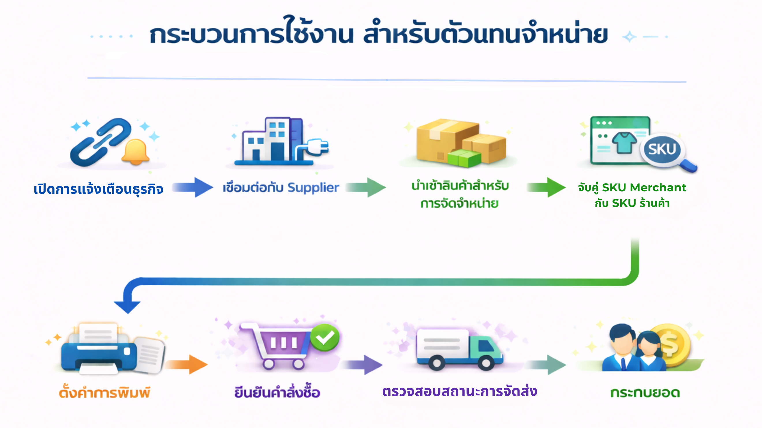 ร้านค้าแพลตฟอร์มของตัวแทนจำหน่าย ก็ต้องจับคู่กับคลังสินค้า Supplier เช่นกัน