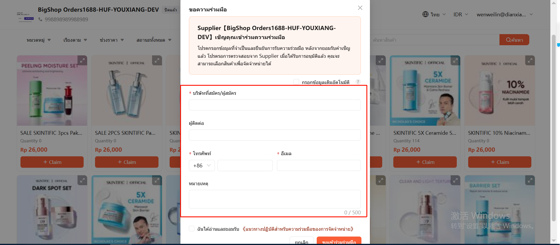 หากยังไม่ได้เชื่อมต่อกับ Supplier ตัวแทนจำหน่ายต้องส่งคำขอความร่วมมือ หลังจาก Supplier ตรวจสอบข้อมูลเรียบร้อยแล้ว จึงสามารถเลือกสินค้าจัดจำหน่ายได้