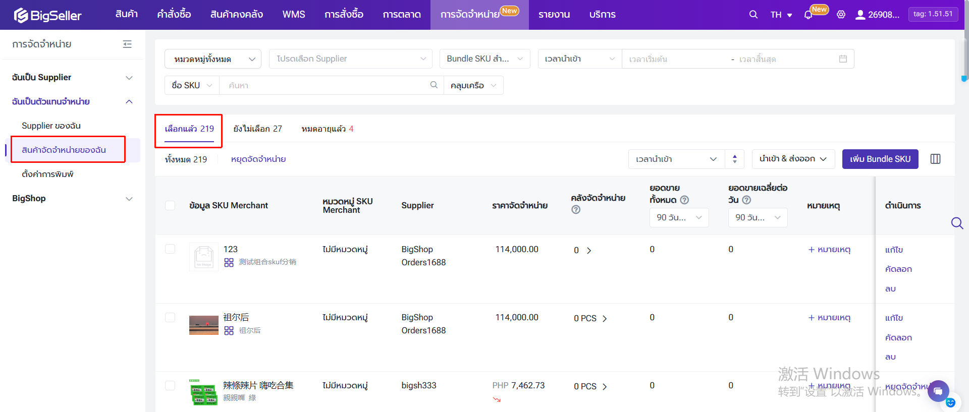 สินค้าที่ตัวแทนจำหน่ายนำเข้าสู่ระบบสำเร็จแล้วจะปรากฏในเมนู การจัดจำหน่าย > ฉันเป็นตัวแทนจำหน่าย > สินค้าจัดจำหน่ายของฉัน