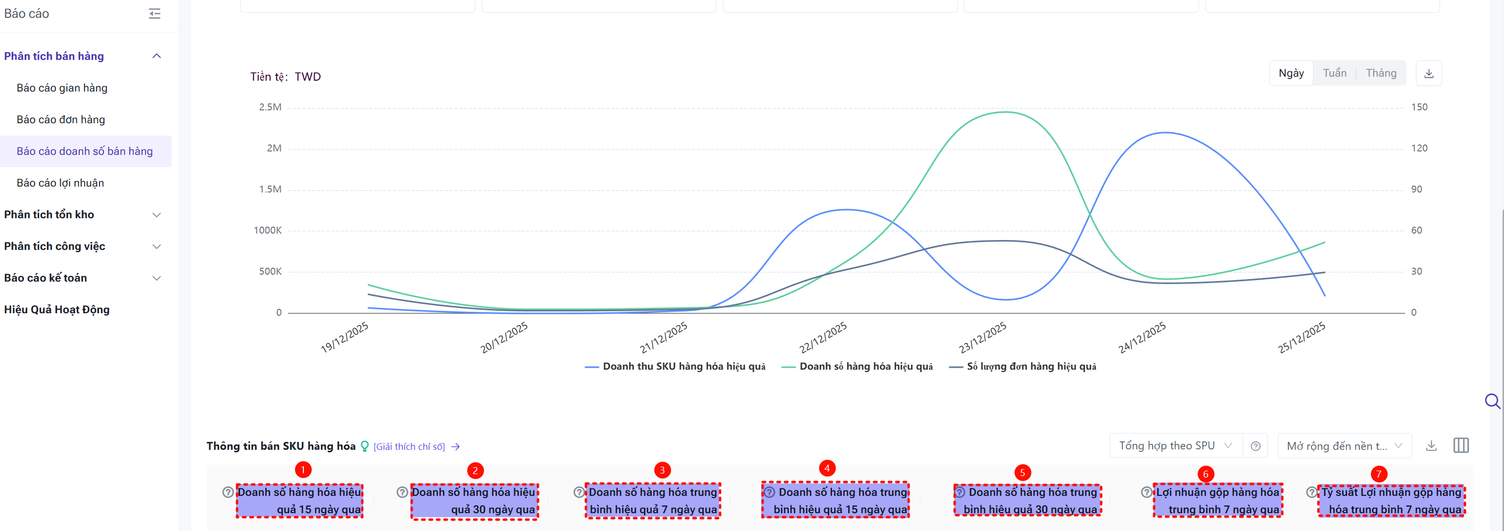 SKU: Xem doanh số theo từng SKU hàng hóa đơn độc.