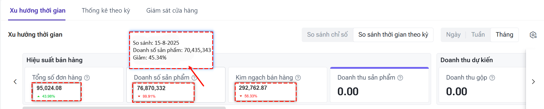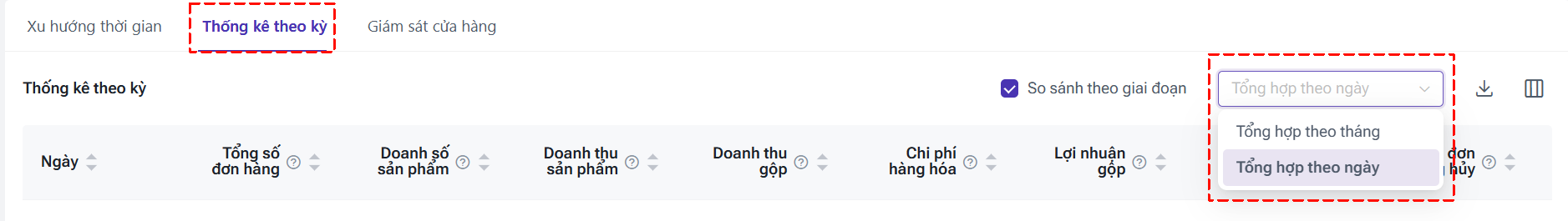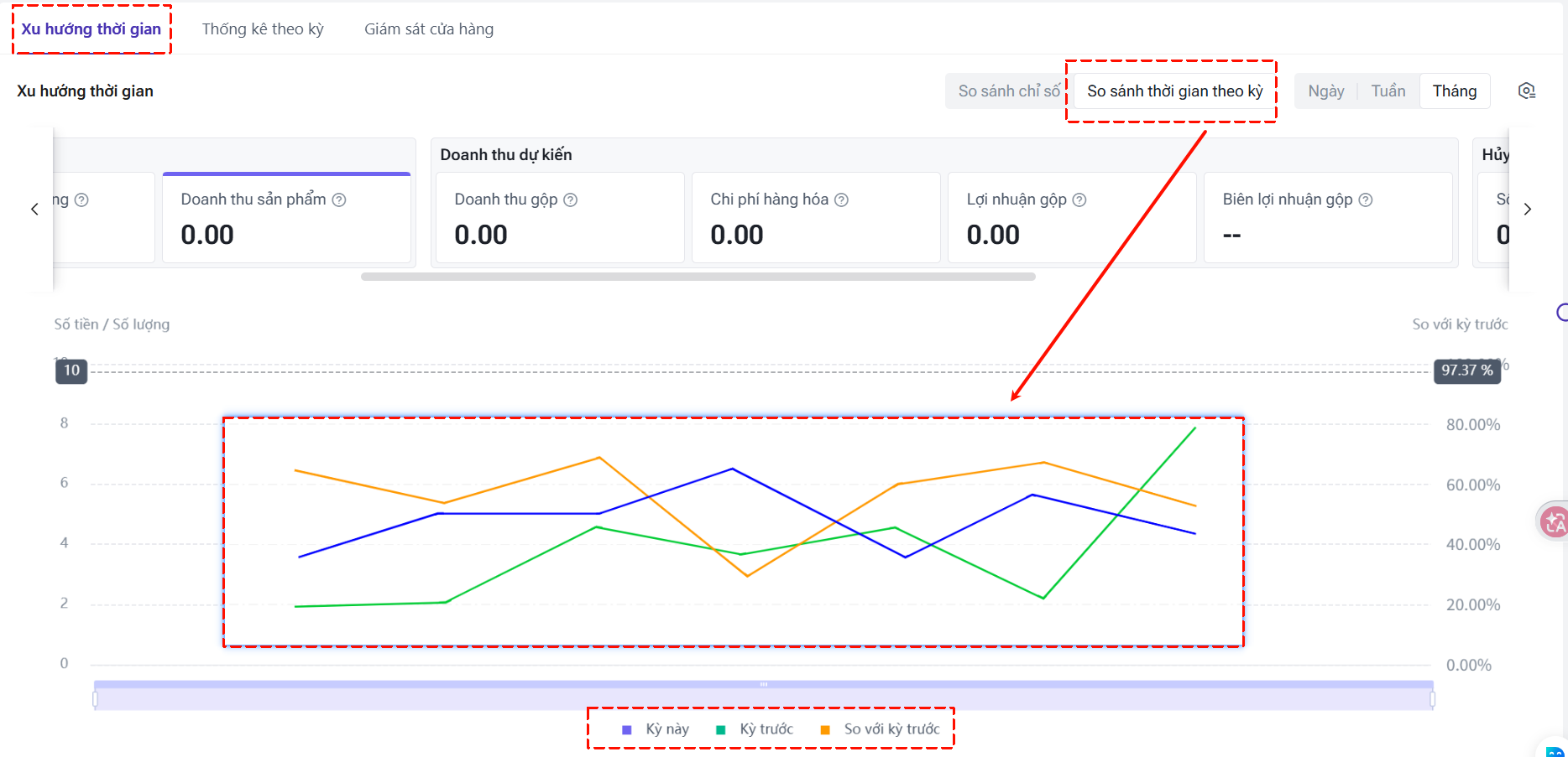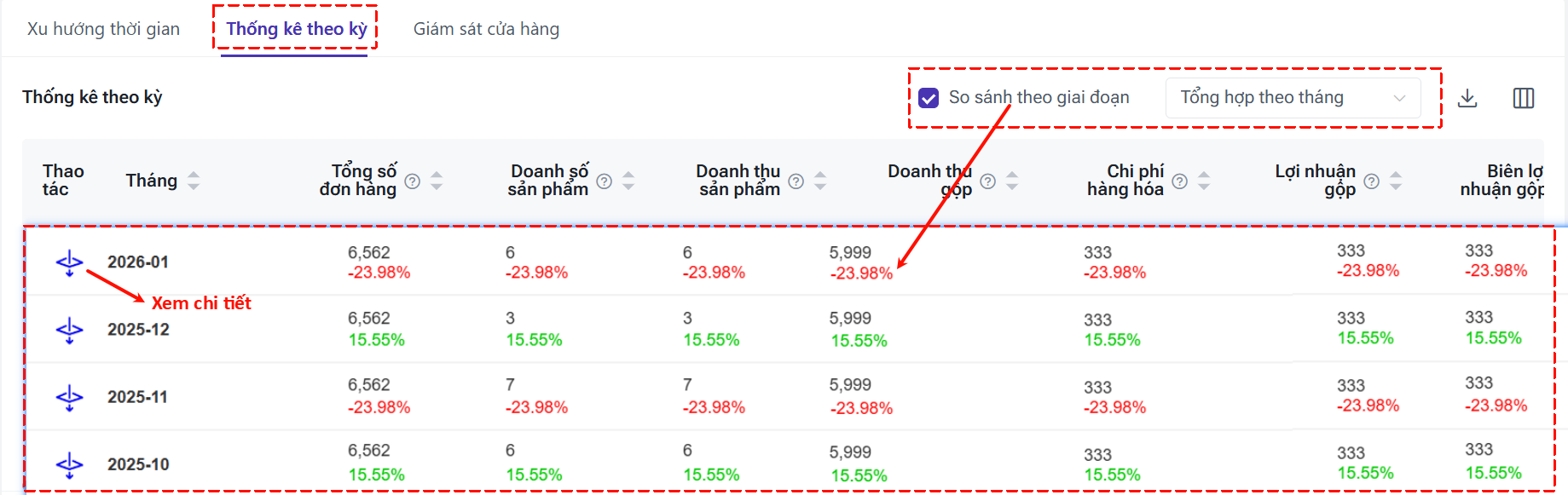 • So sánh thời gian theo kỳ: Phân tích xu hướng dọc cho một chỉ số duy nhất dựa trên các khoảng thời gian khác nhau (Kỳ này, Kỳ trước, So với kỳ trước).