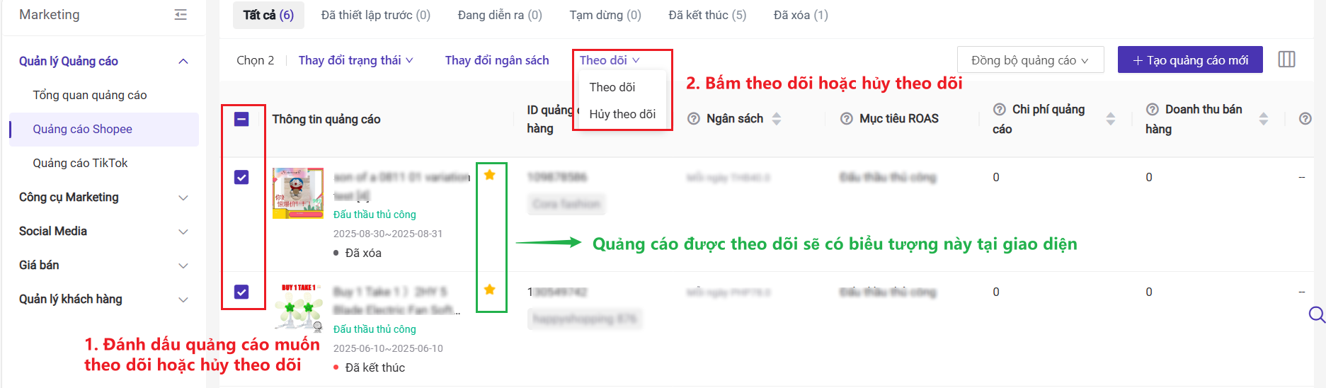 3.3 Theo dõi hoặc hủy theo dõi quảng cáo