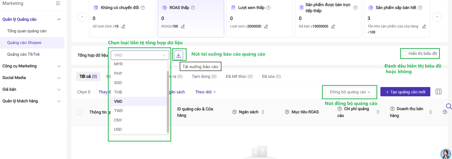 ROAS thấp: ROAS ≤ giá trị cài đặt