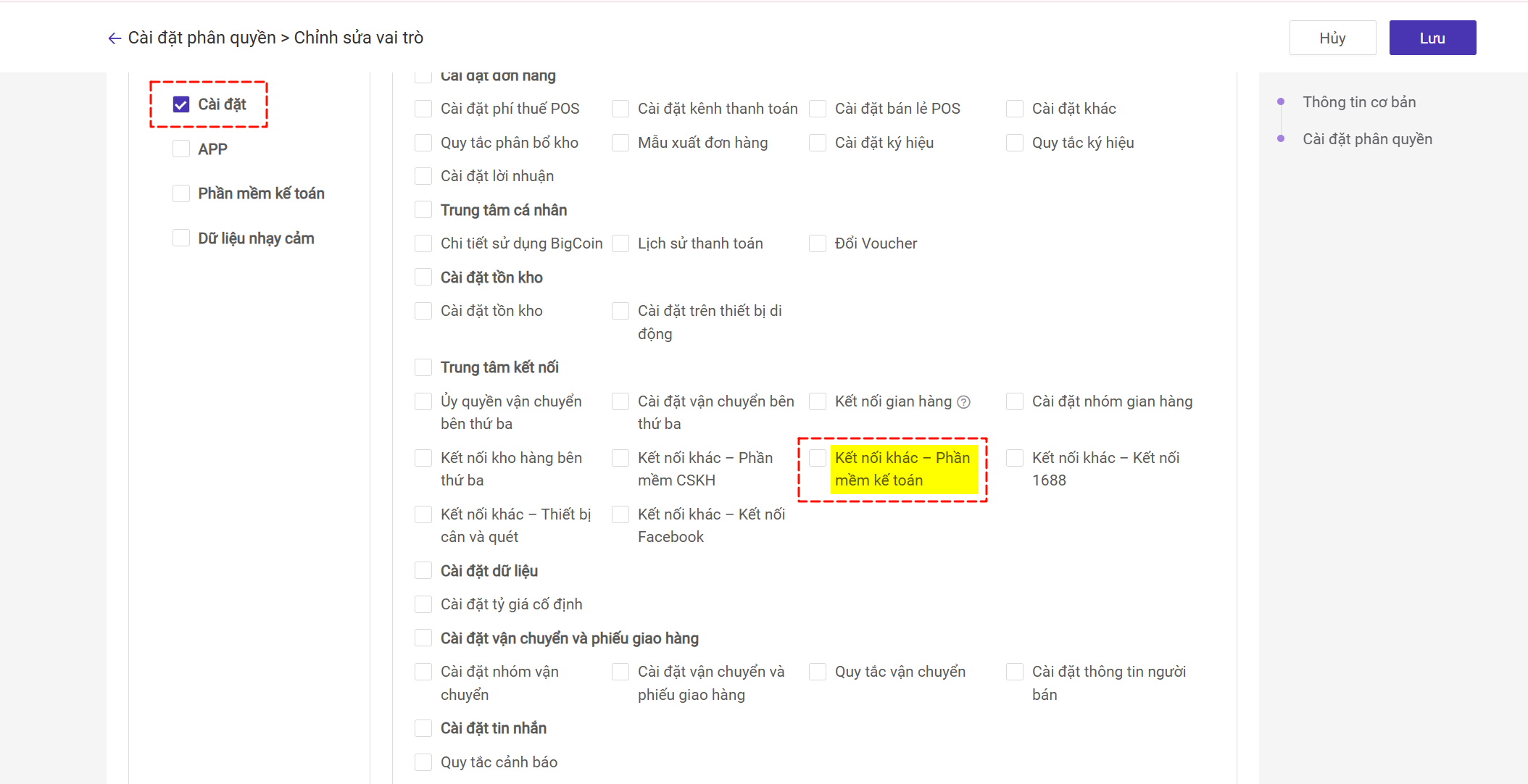 4. Tài khoản phụ cần quyền truy cập trang kết nối khác mới có thể quản lý phân quyền chi tiết và linh hoạt hơn.