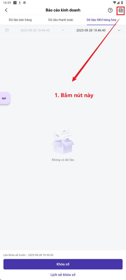 Dữ liệu bán hàng: Được sử dụng để hiển thị trang đặc biệt cho dữ liệu tiếp thị trong khoảng thời gian kế toán của cửa hàng đã chọn, bằng cách hiển thị dữ liệu chi tiết để giúp người dùng xem và in hóa đơn kế toán để thực hiện việc kiểm tra tài chính.