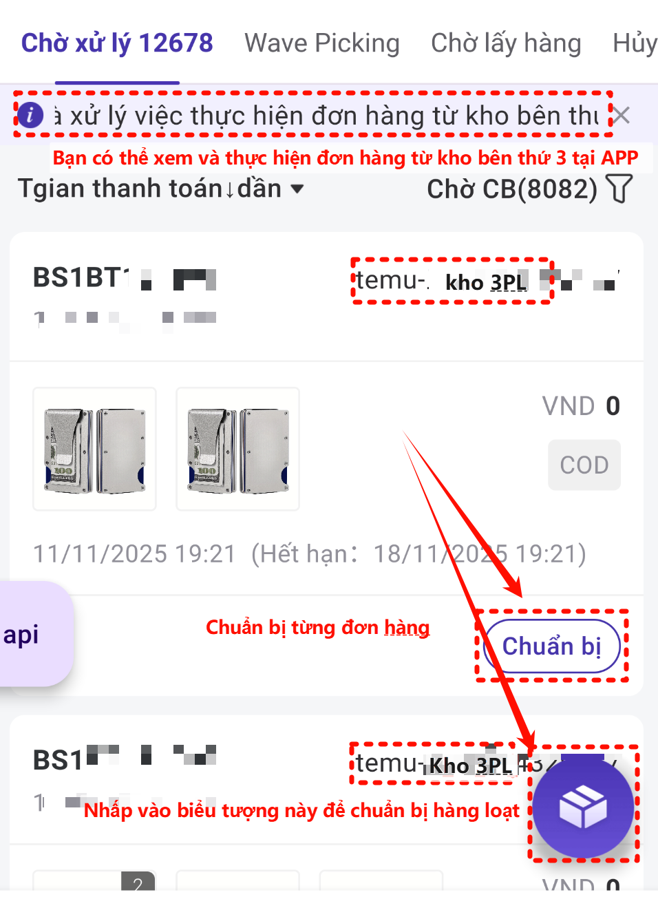 Danh sách hỗ trợ hiển thị đơn 3PL Chờ in / Wave Picking.