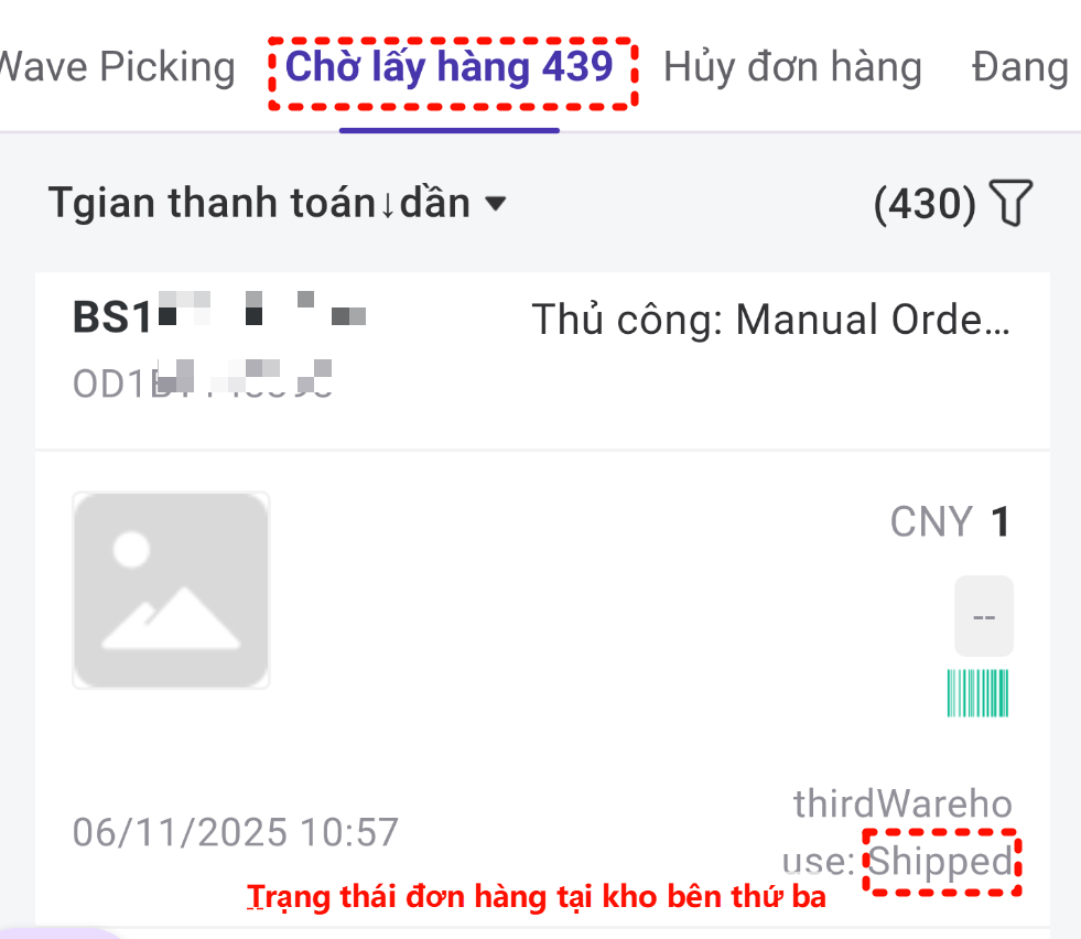 Khi xử lý đơn thủ công trên APP, cần kiểm tra kho 3PL hỗ trợ hay không.