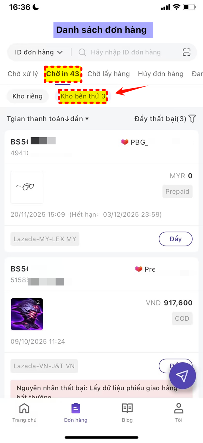 → Vui lòng không đẩy các đơn offline / tự giao sang kho bên thứ ba, nếu không đơn sẽ không thể giao và có nguy cơ quá hạn.
