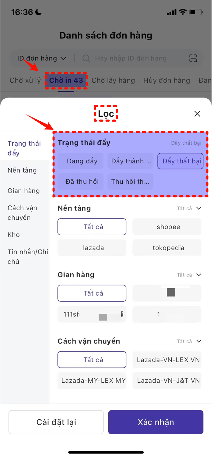 Chỉ những đơn có vận chuyển do nền tảng chỉ định mới có thể đẩy sang kho bên thứ ba.