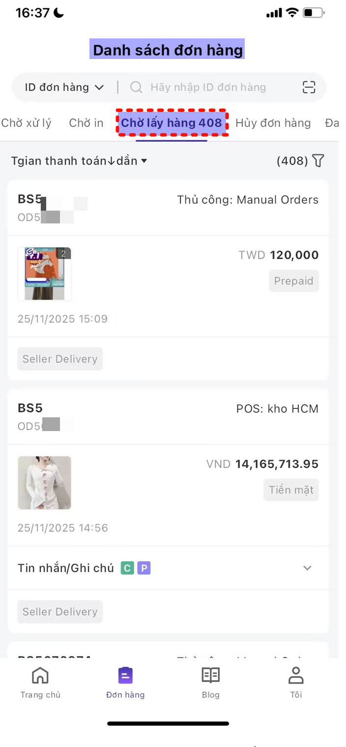 Khi kho giao hàng, đơn sẽ chuyển sang trang Chờ lấy hàng.