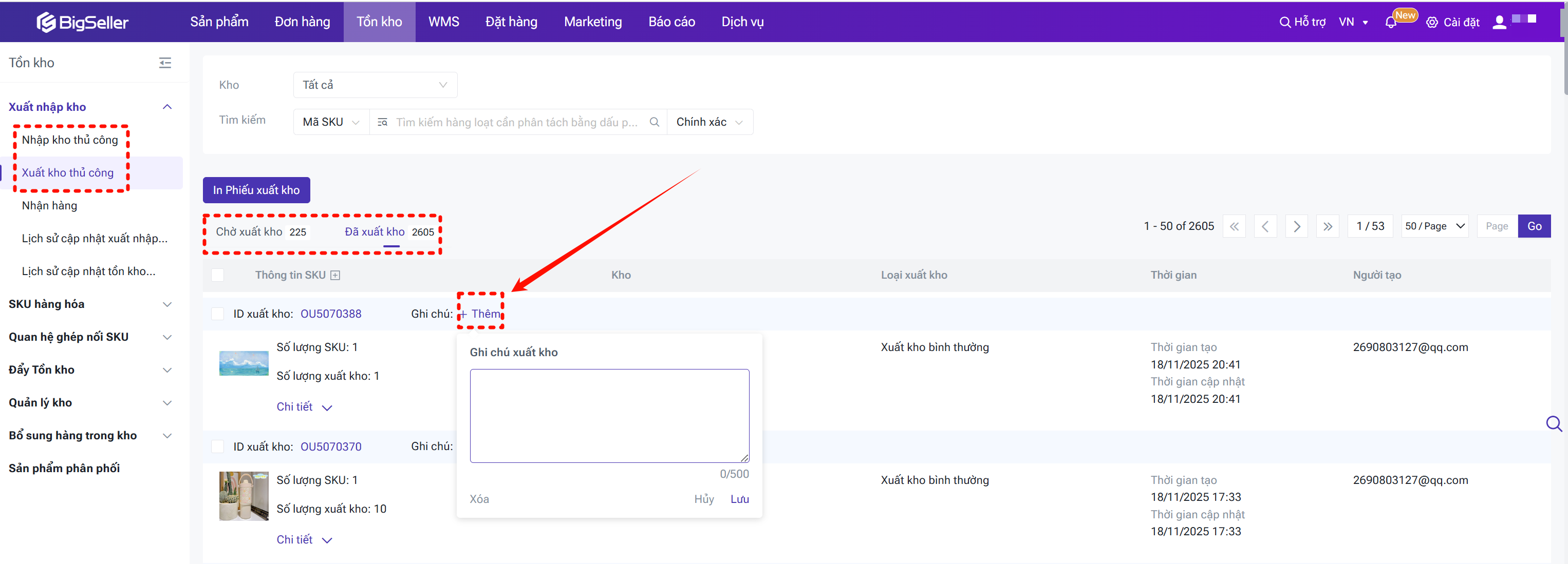 2. Nếu bạn không tíck chọn xuất kho ngay lập tức, sau khi ấn vào đệ trình, phiếu xuất kho đã tạo sẽ xuất hiện trong danh sách Chờ xuất kho, bạn cần phải xác nhận thủ công xuất kho.