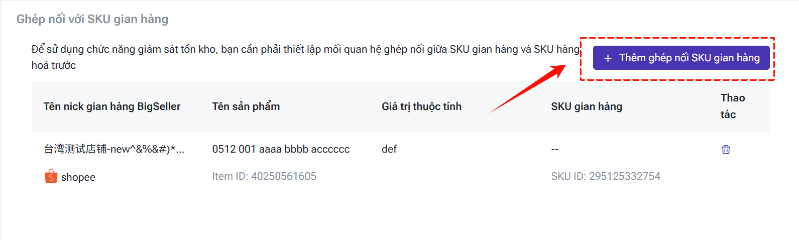 Bước 3: Thực hiện ghép nối SKU combo vừa tạo với SKU gian hàng tương ứng.