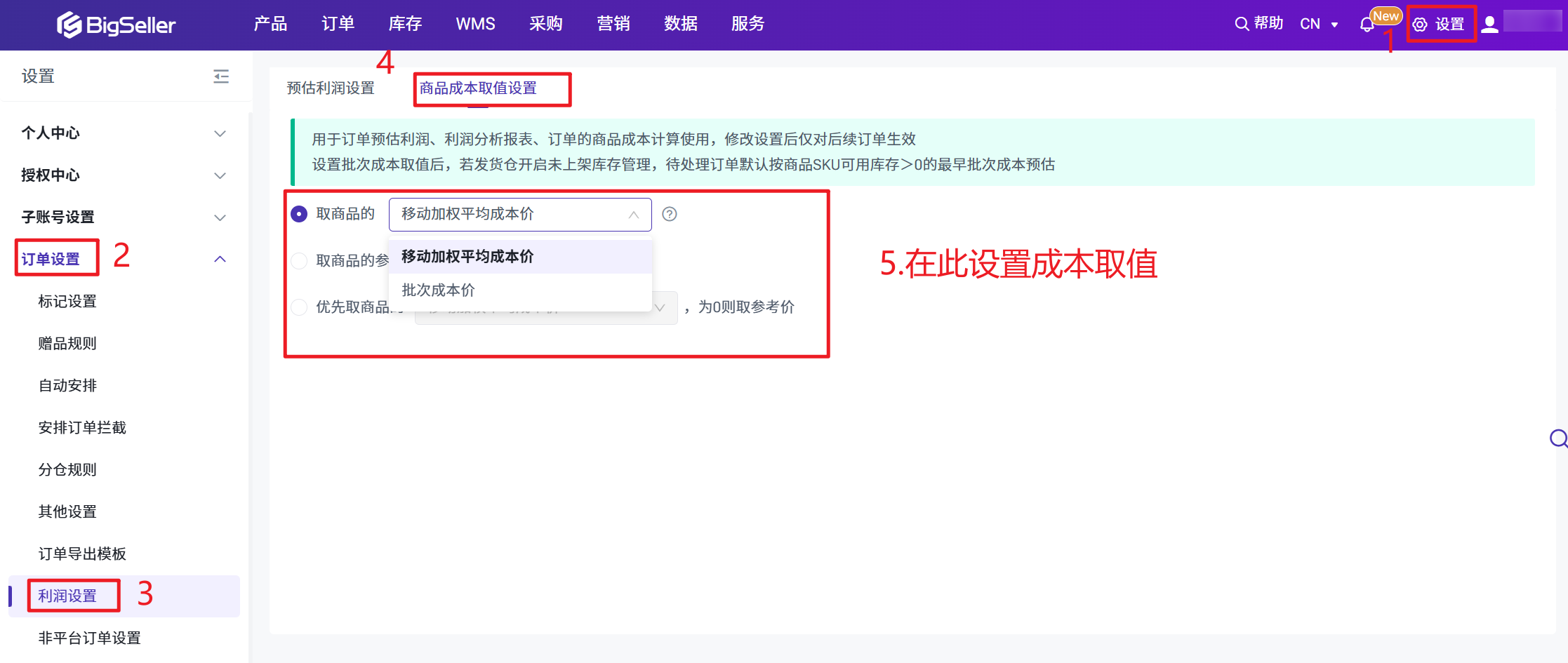 - 批次成本价:预估利润计算、利润报表使用订单发货仓库的发货批次成本价,若设置取值为0时则按0计算