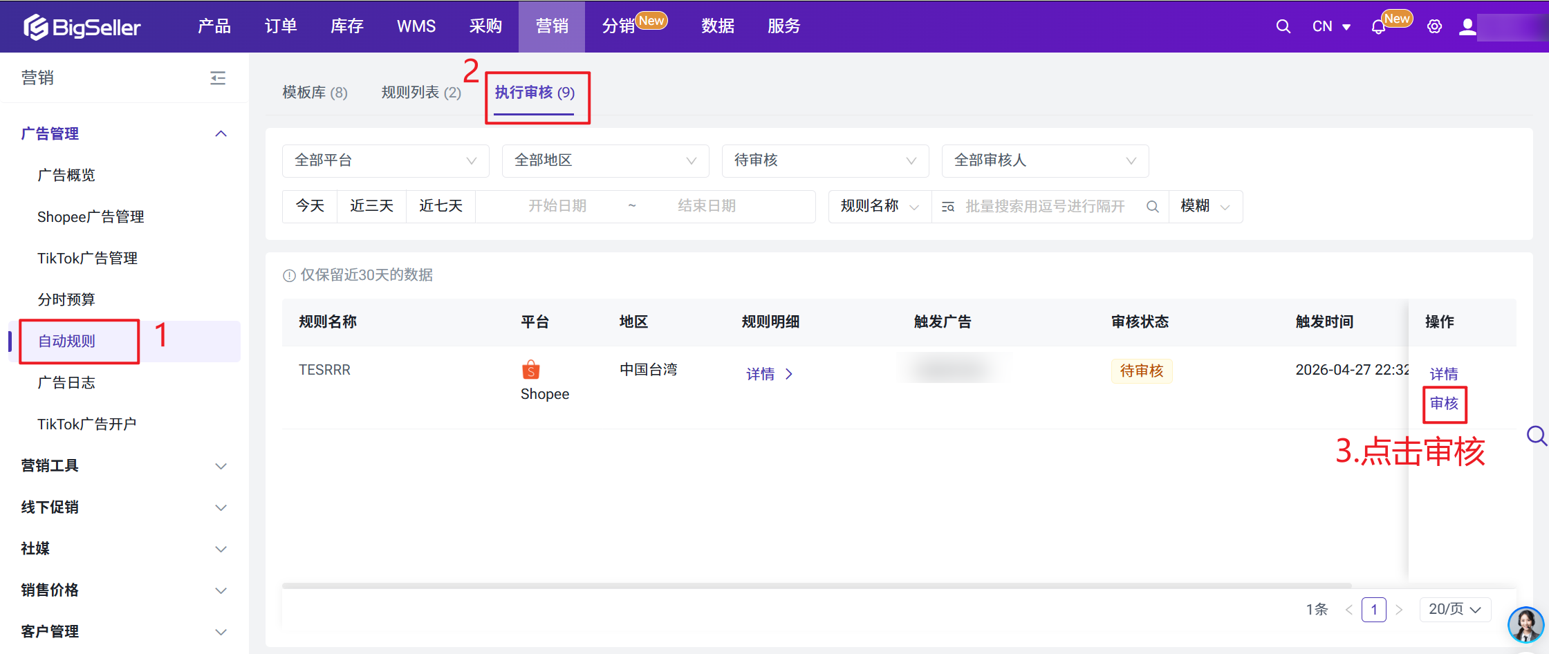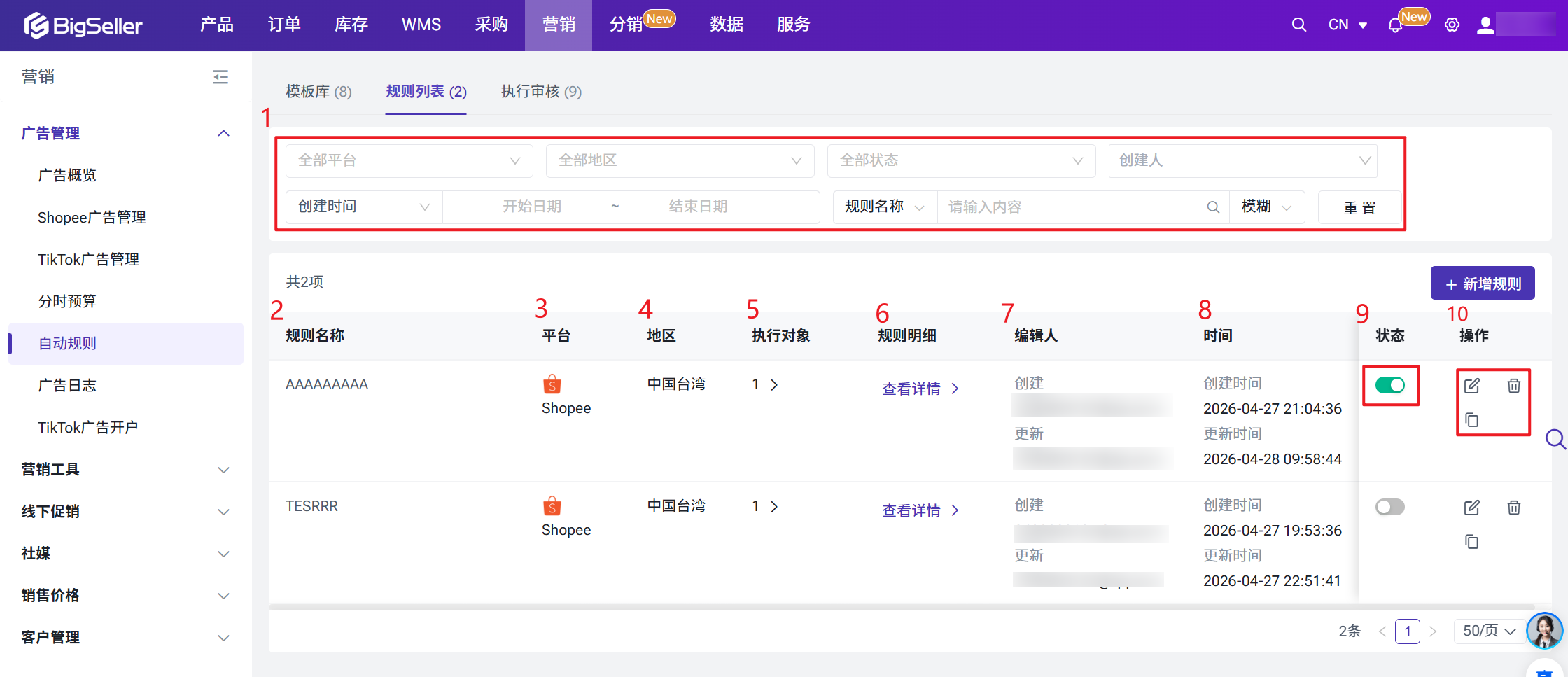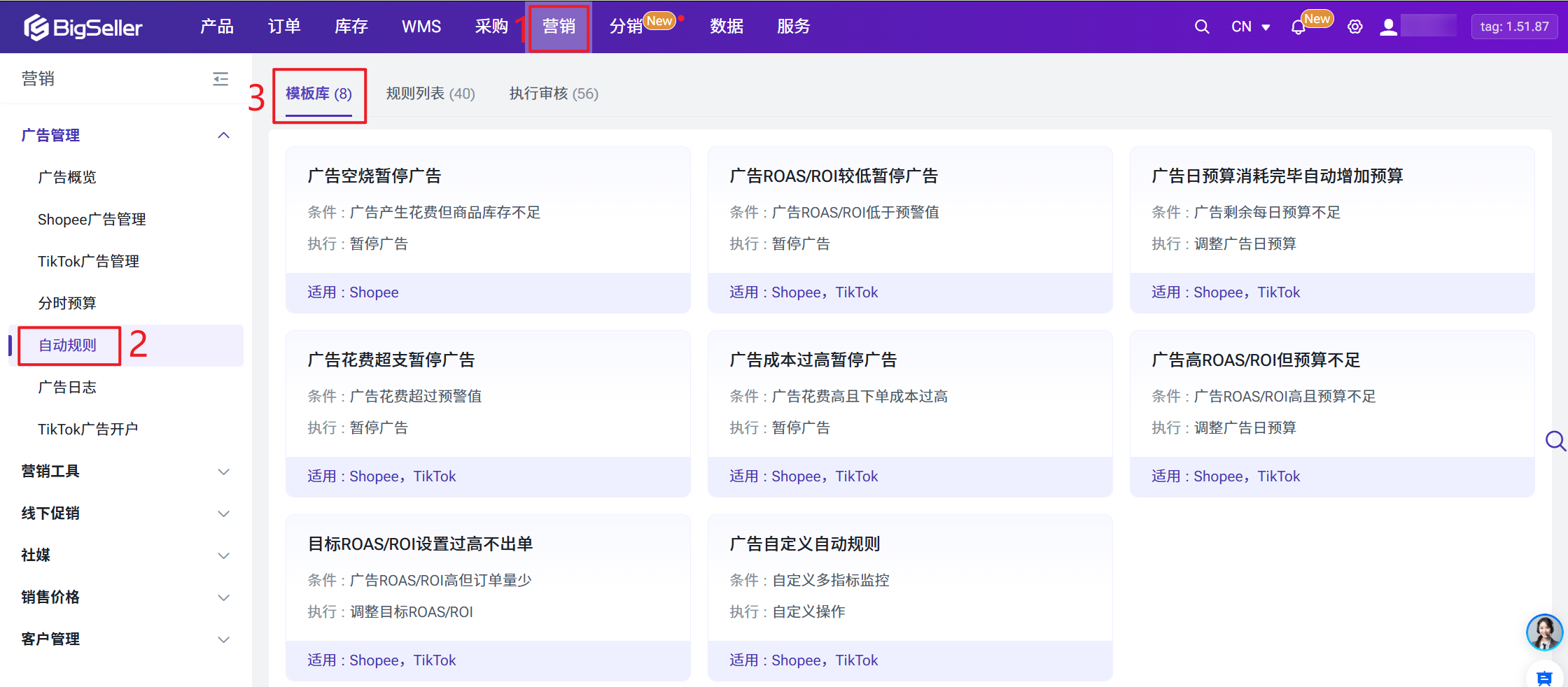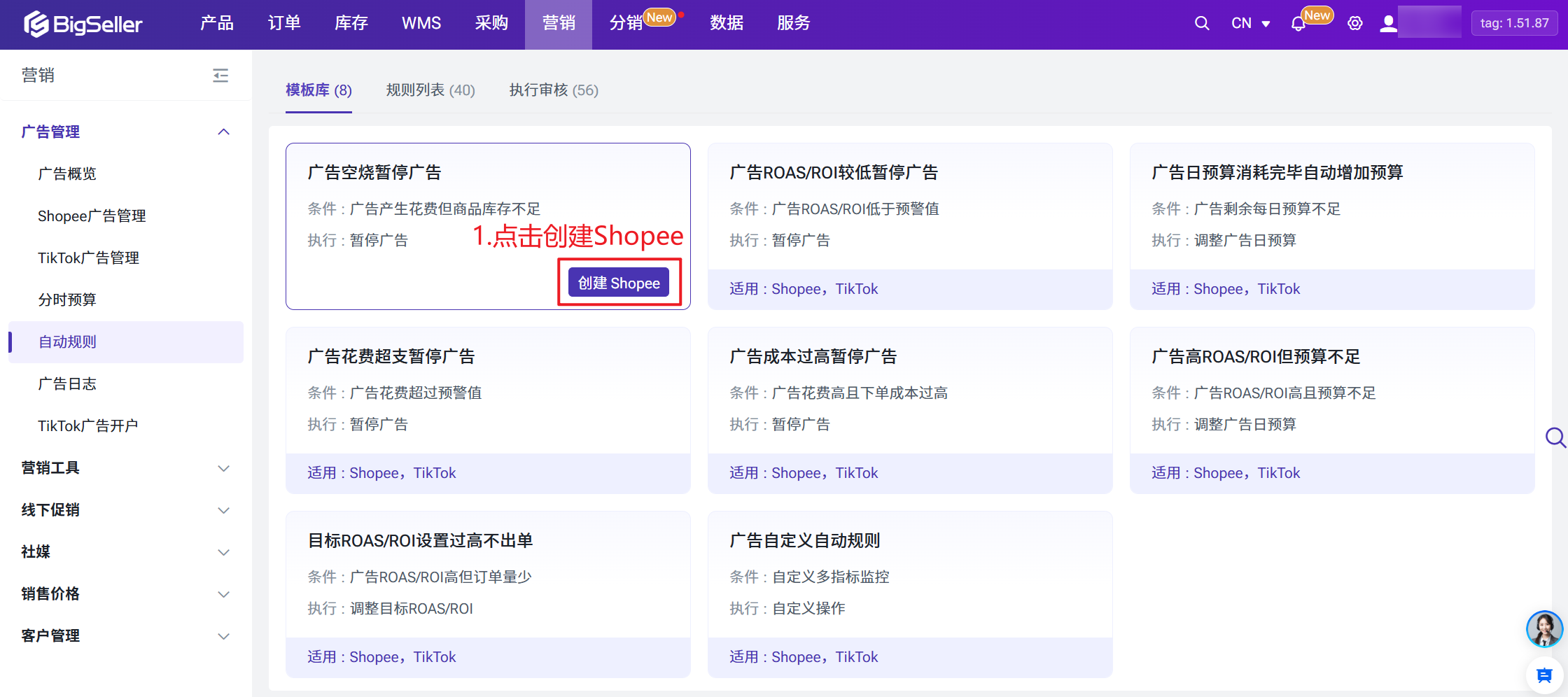 1、子账号需拥有角色“营销-自动规则”的权限才可以操作2、需授权Shopee/TikTok广告帐户
