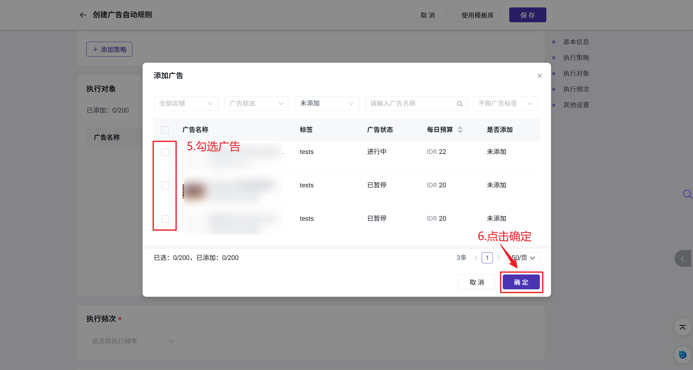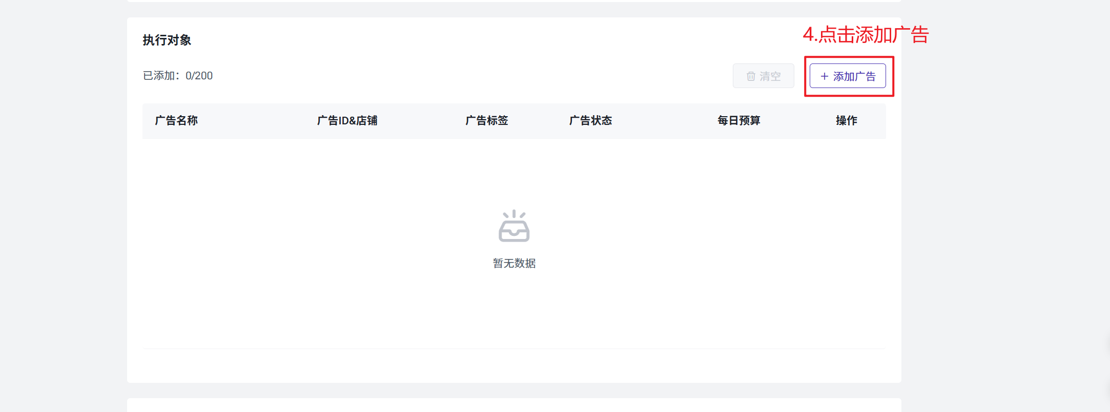5、执行对象:规则执行的广告对象,点击可移除广告或添加新的广告