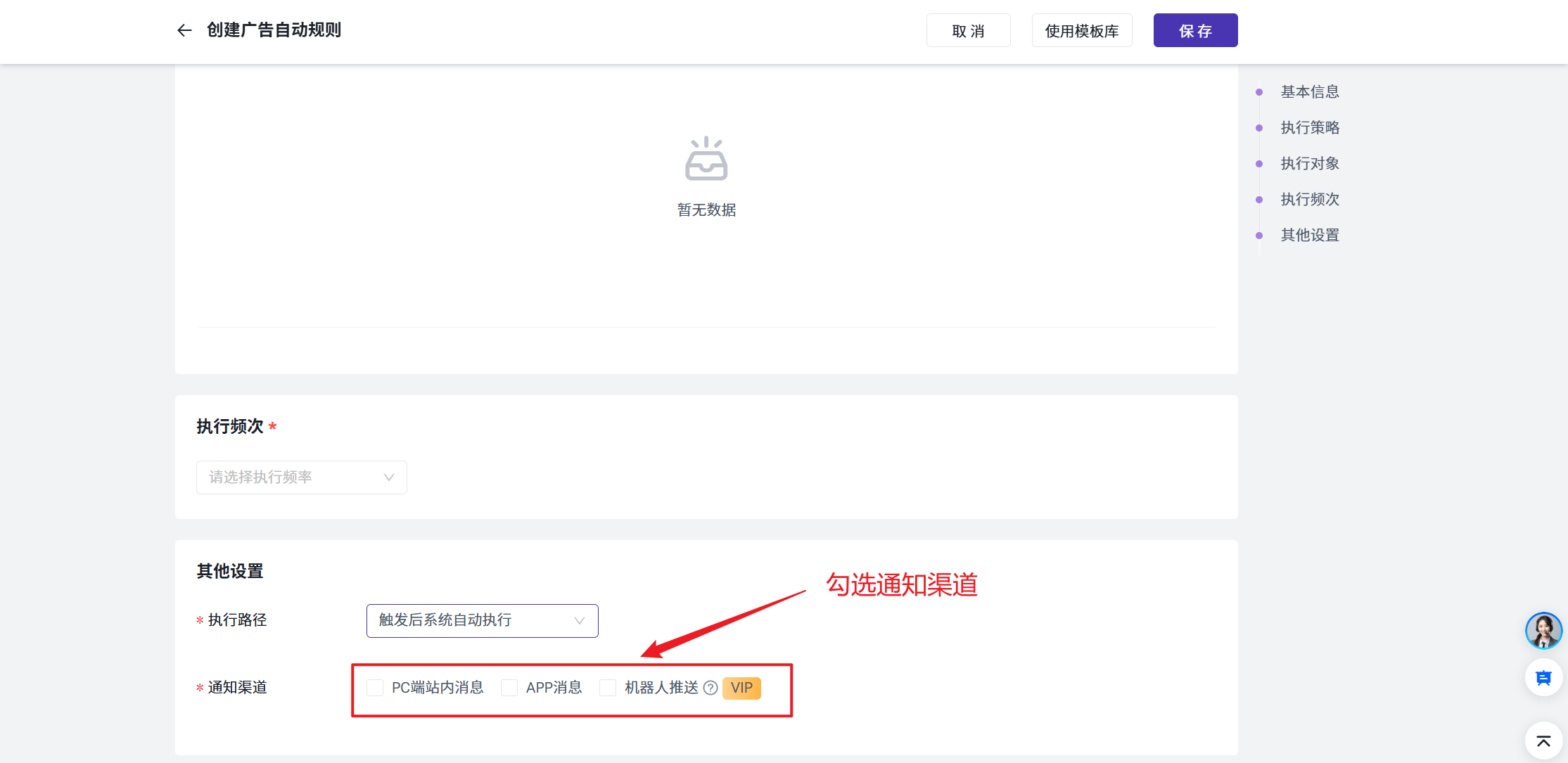 可设置预警消息,当广告满足设定的自动规则触发条件时,系统将发送预警通知。