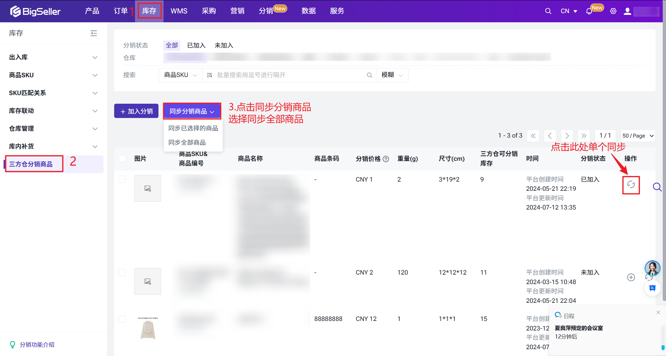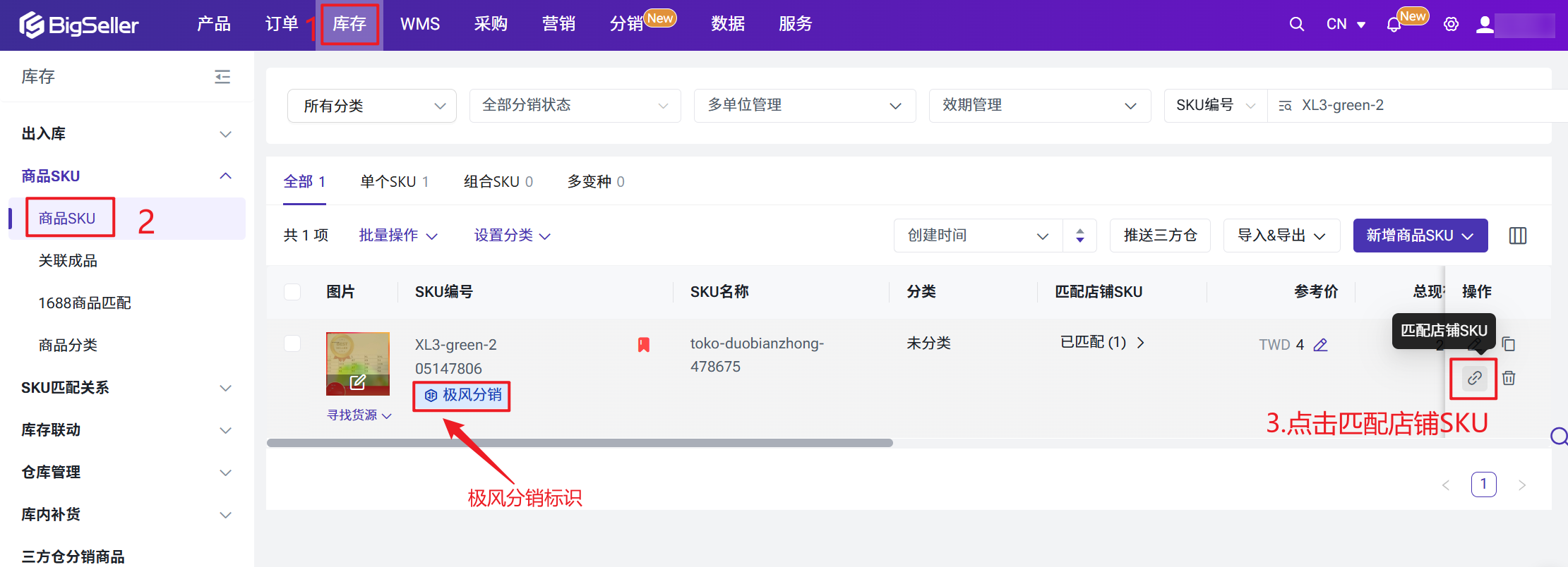 已授权极风WMS仓库系统的三方仓用户,可以使用三方仓分销功能进行分销商品,一键添加分销产品到BigSeller,并自动创建三方仓产品与BigSeller商品SKU的匹配关系,销售、管理货主的分销商品。二、授权使用极风WMS仓库系统的三方仓