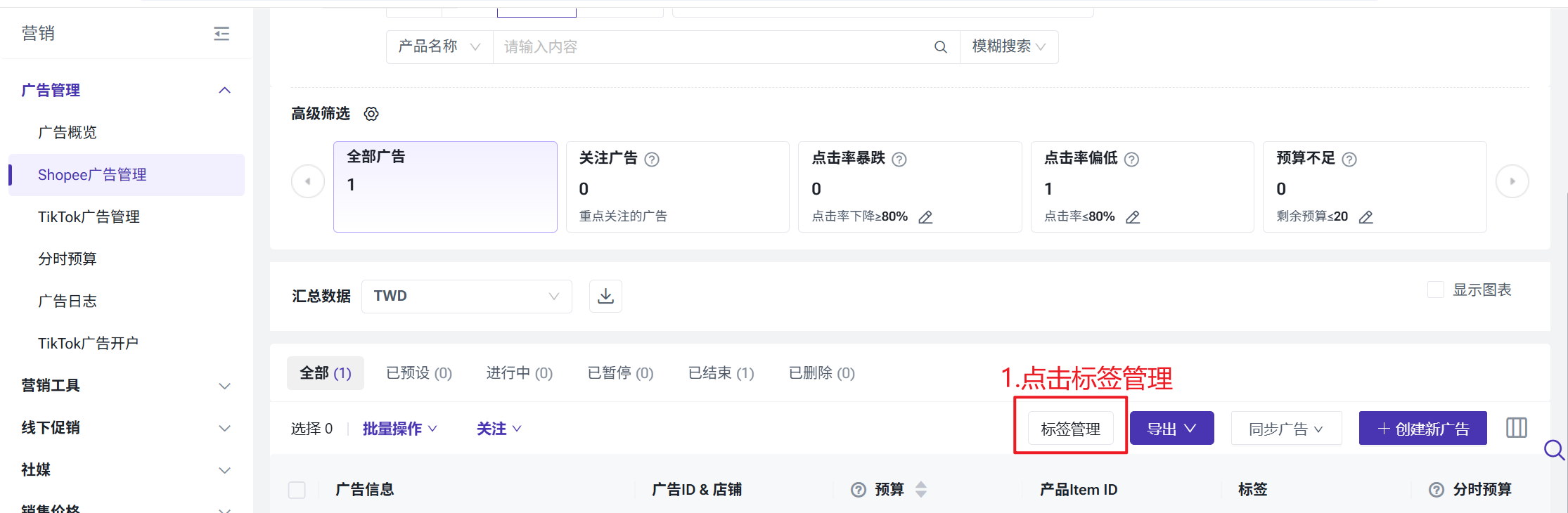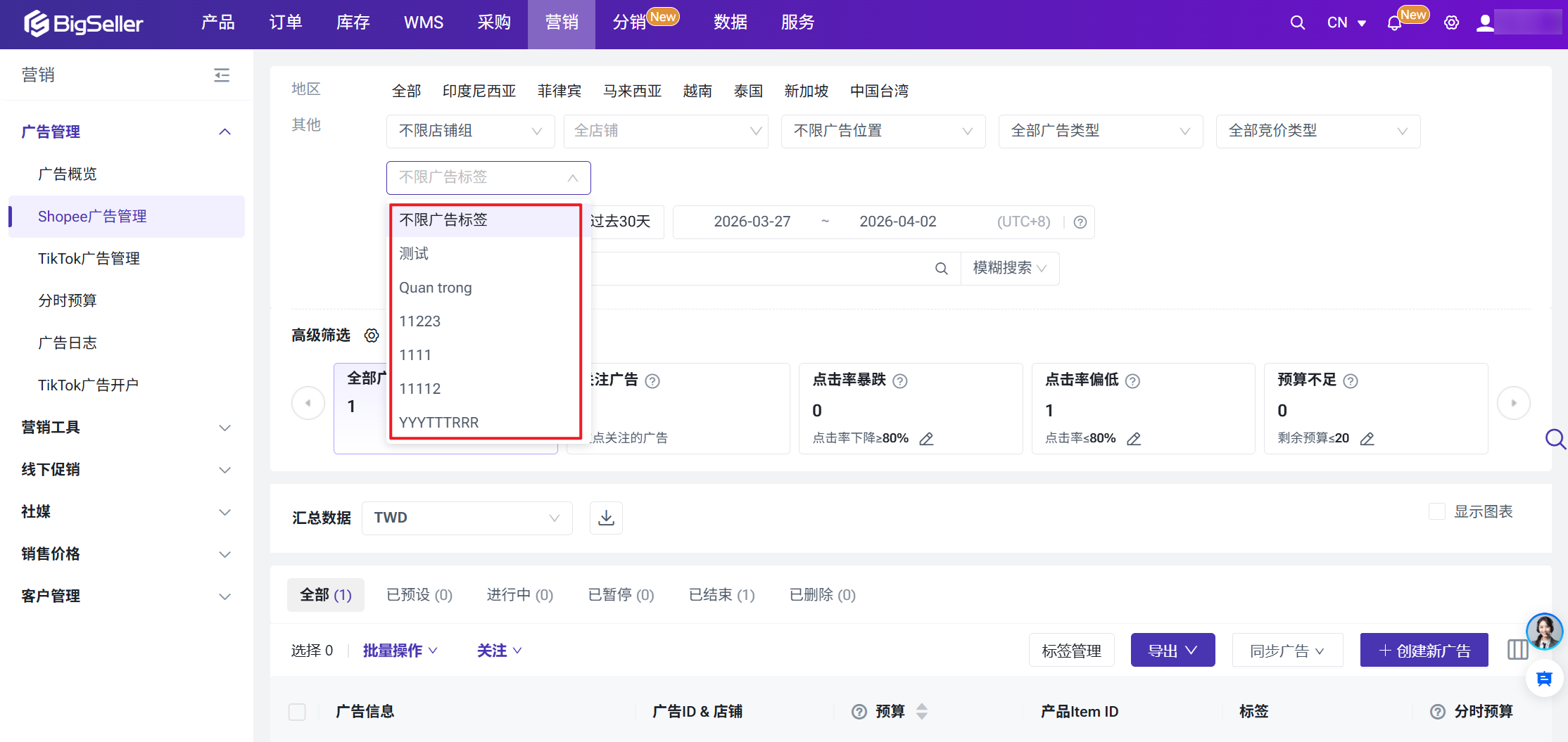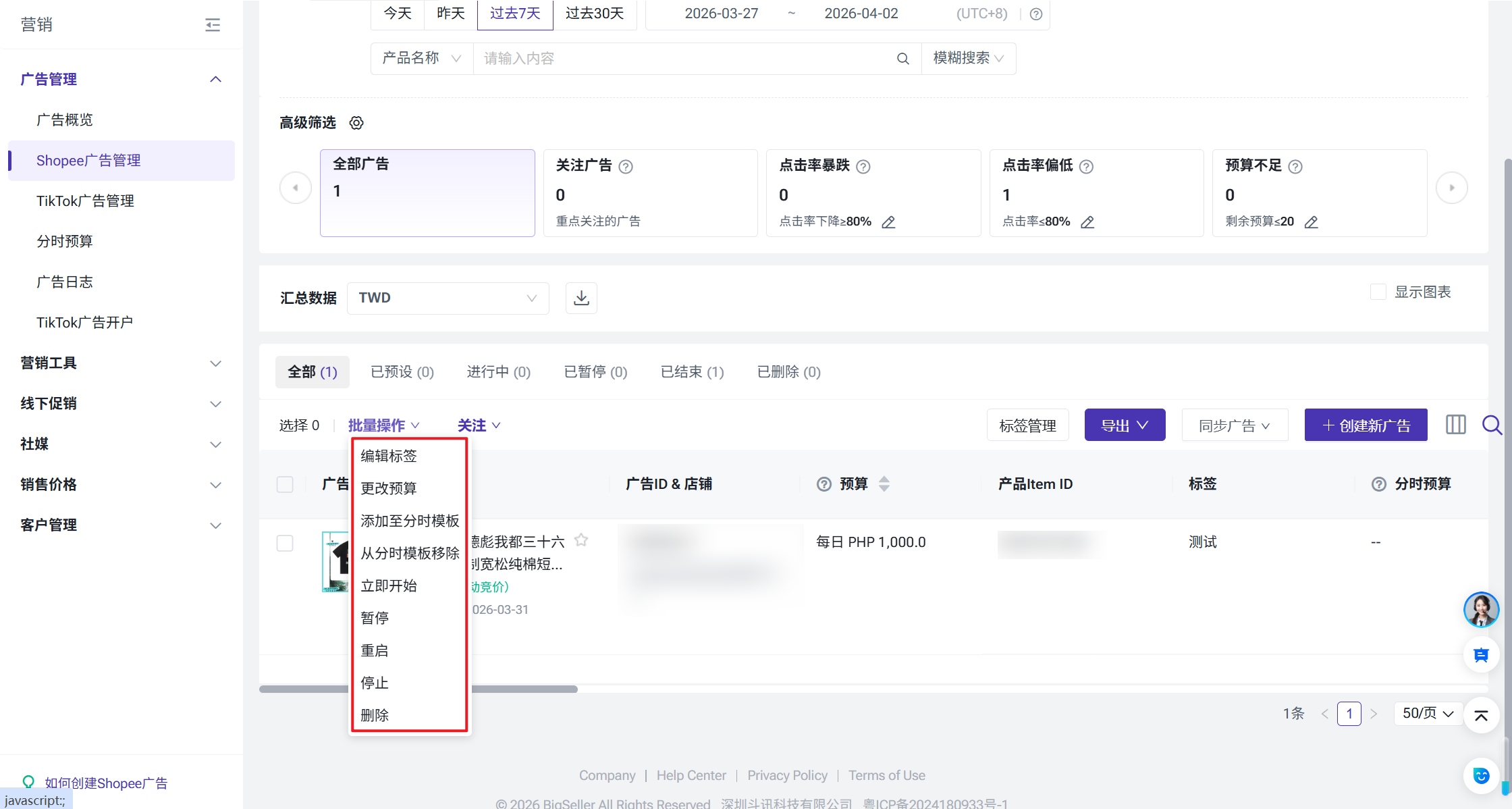 Shopee广告管理功能介绍