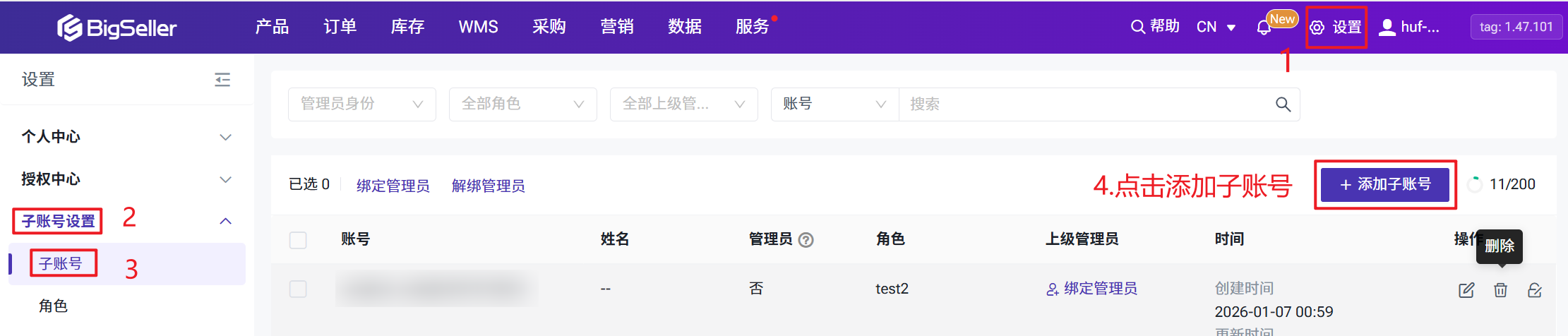 2.2 如何删除子账号?