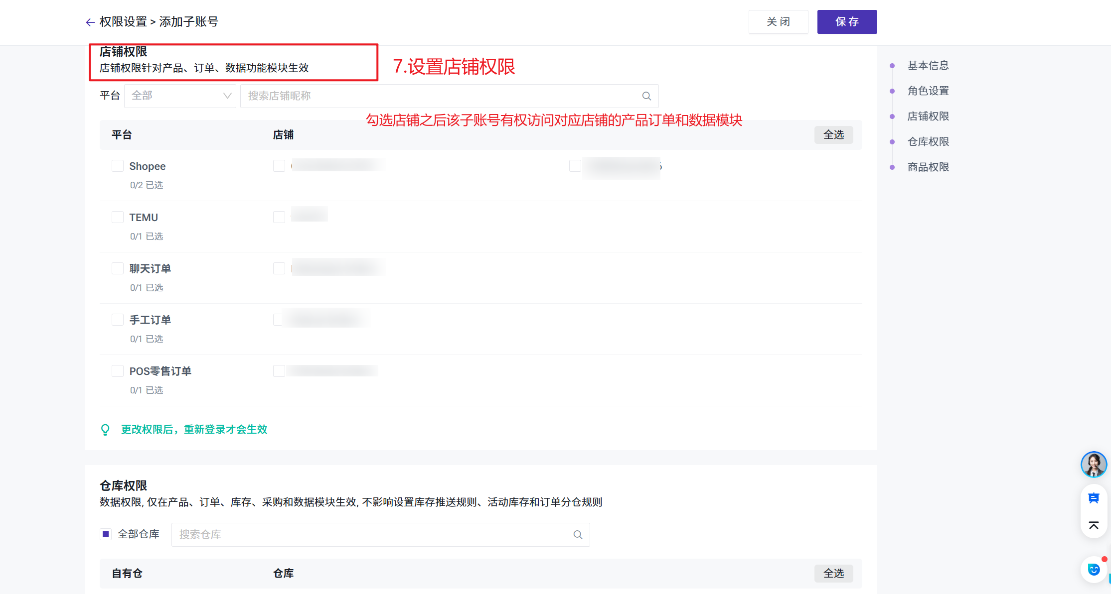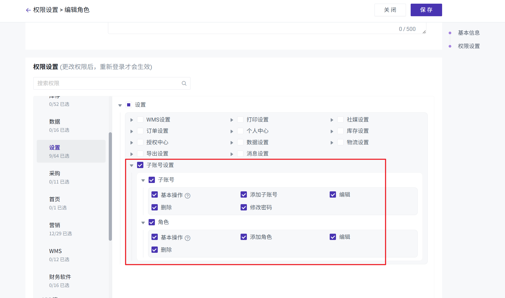 注意事项:修改子账号权限后,不需要重新登录也能生效。