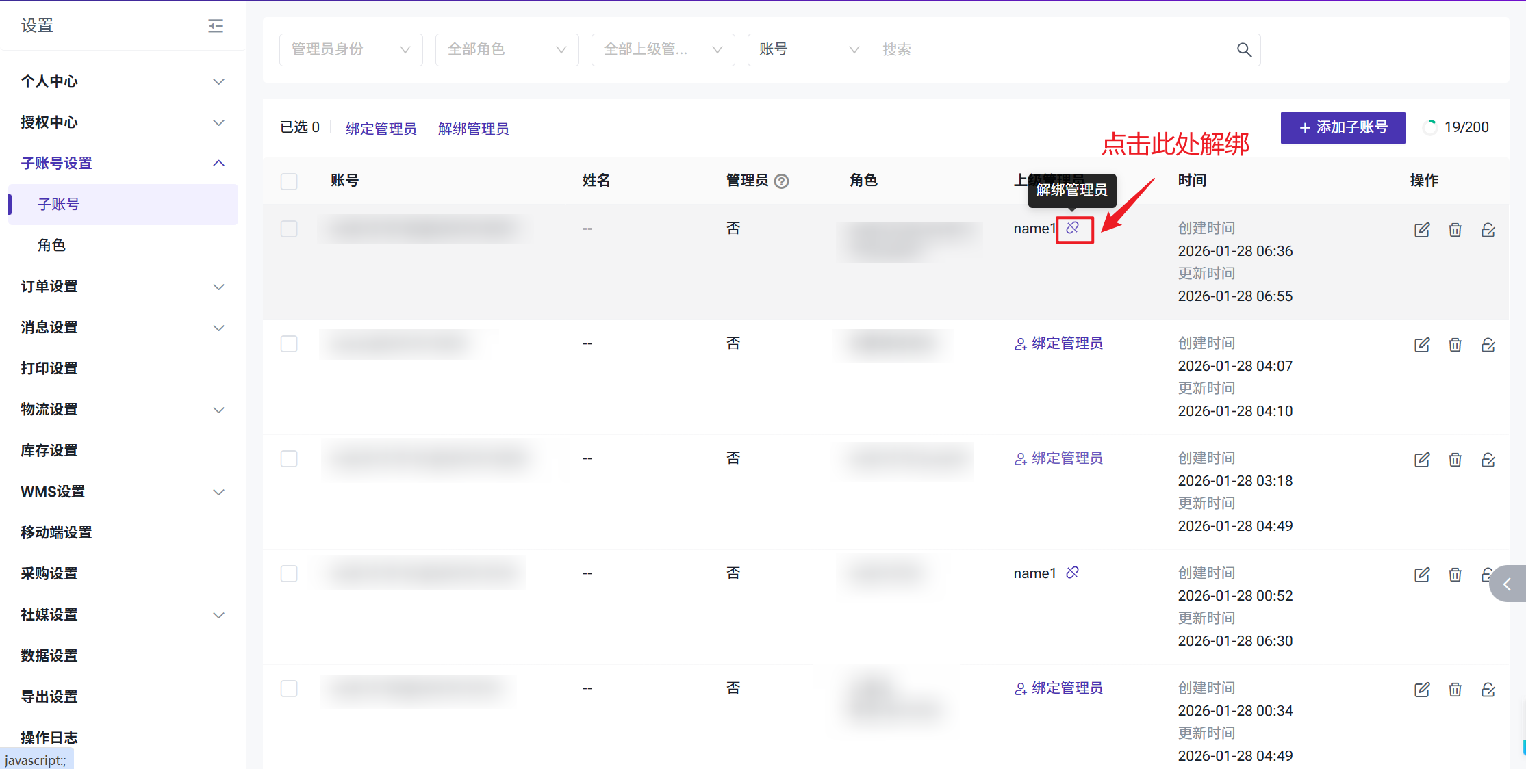 如果要解除子账号绑定的管理员,直接点击解绑按钮即可
