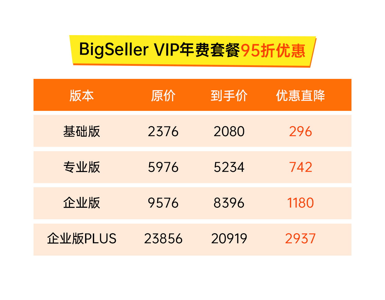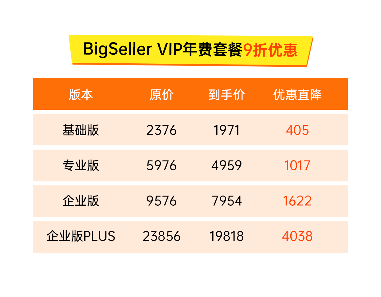 1. 活动期间,充值购买BigSeller VIP服务,老用户享9折优惠,新用户享9.5折优惠。(注:老用户即已经购买过BigSeller VIP服务的用户)