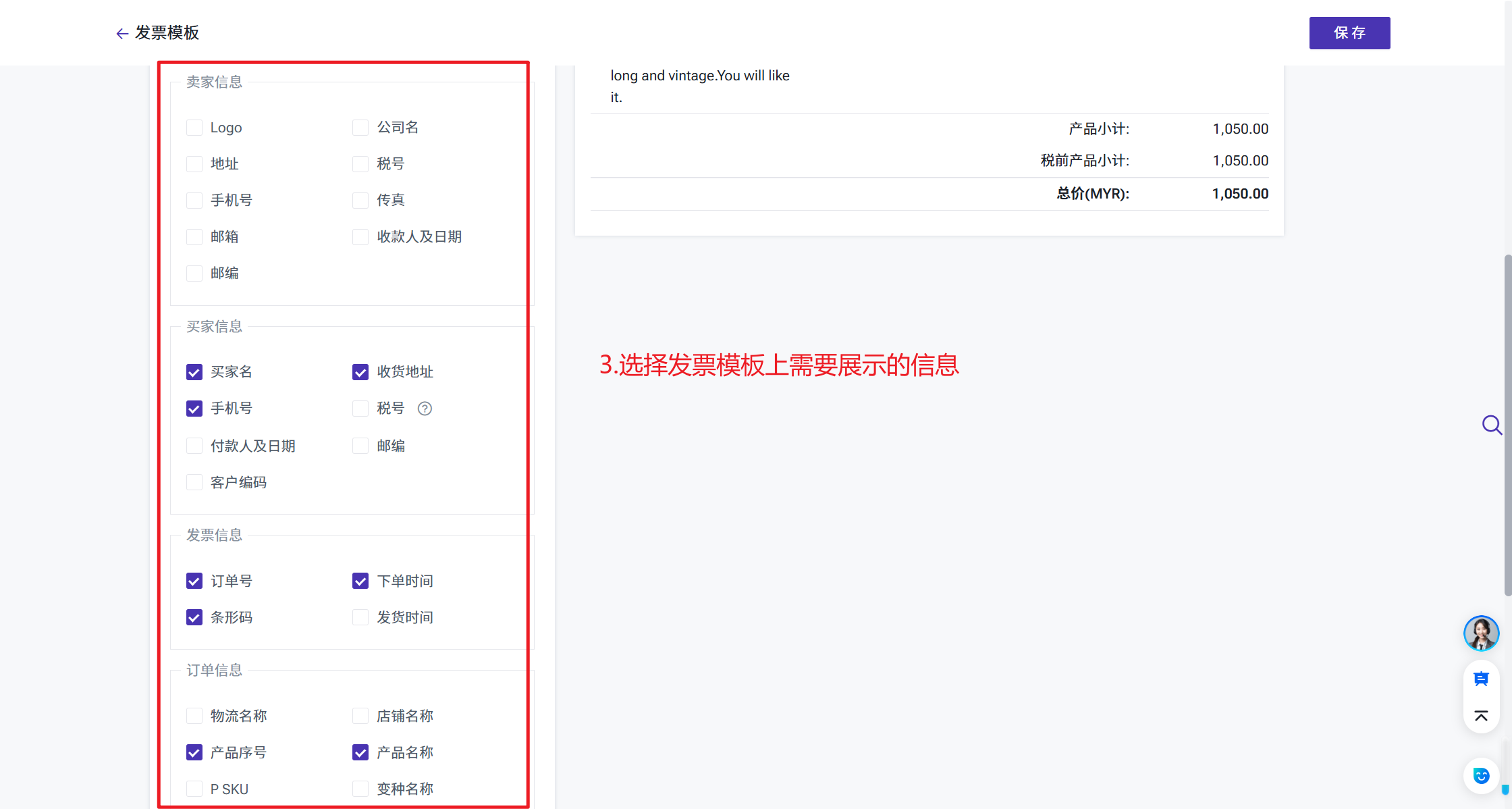 【2】您也可以自定义发票模板,可以添加店铺Logo或者公司地址等等,最多可以设置20个发票模板