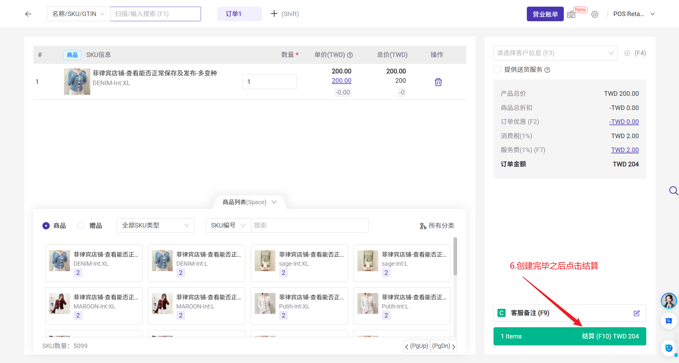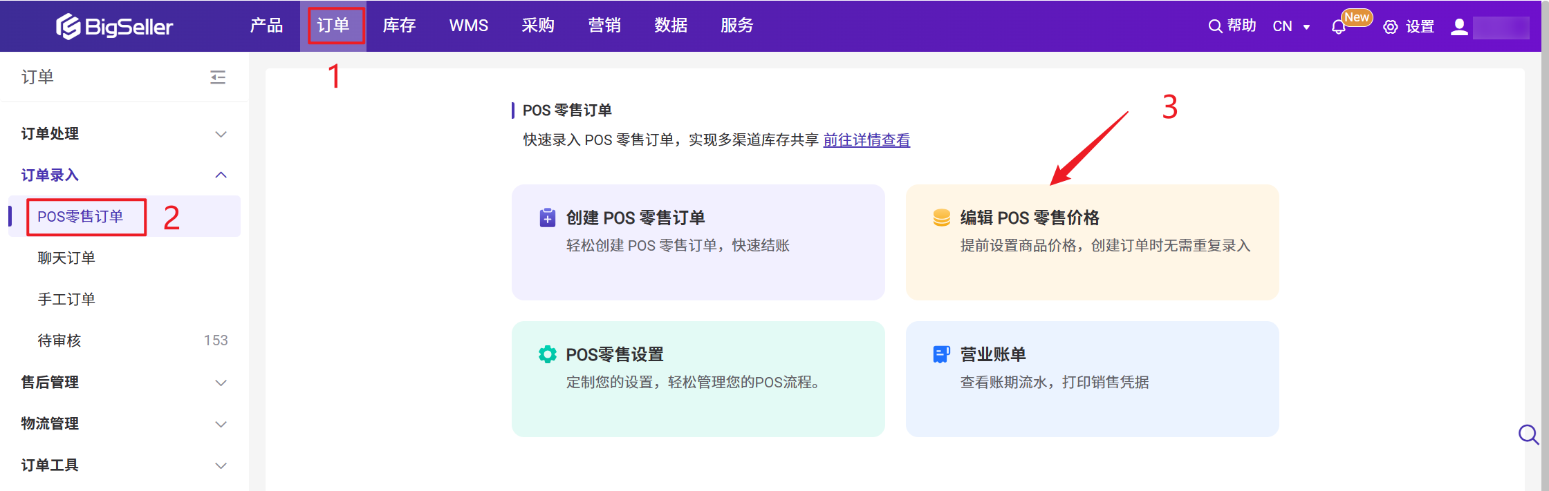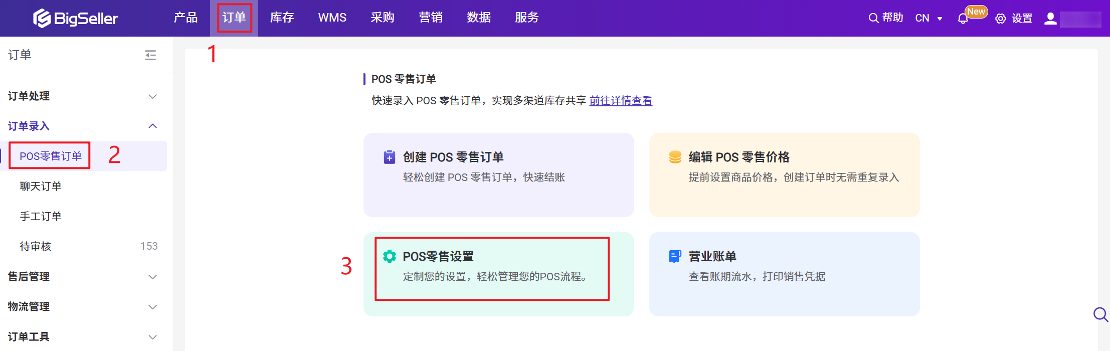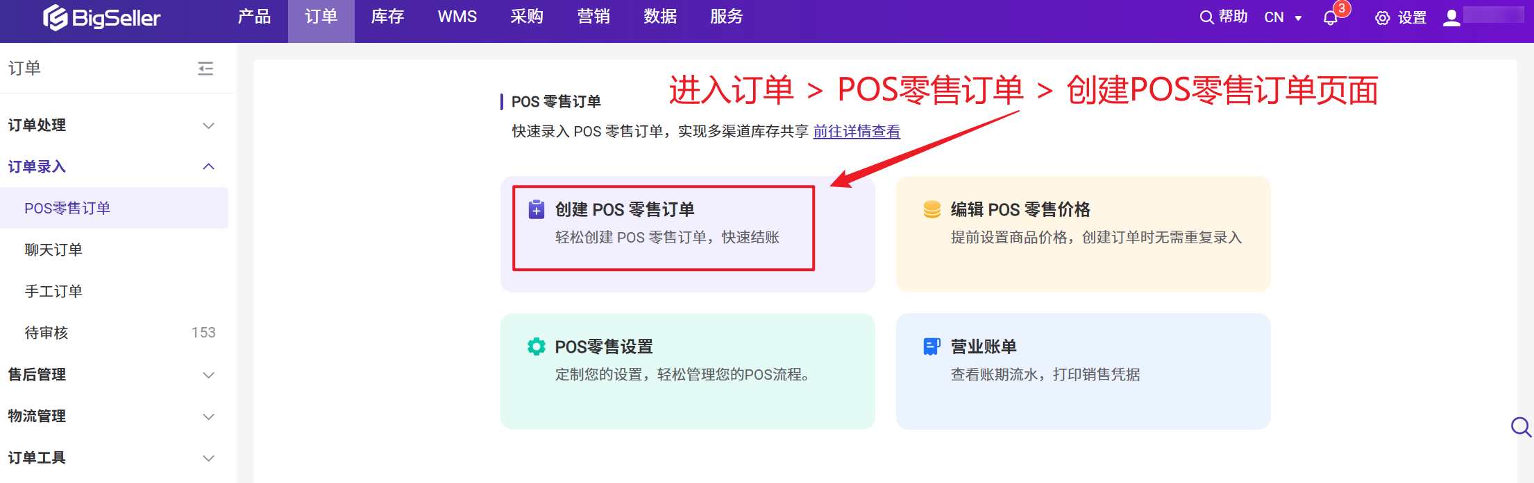 第一步:订单 > POS零售订单 > 创建POS零售订单