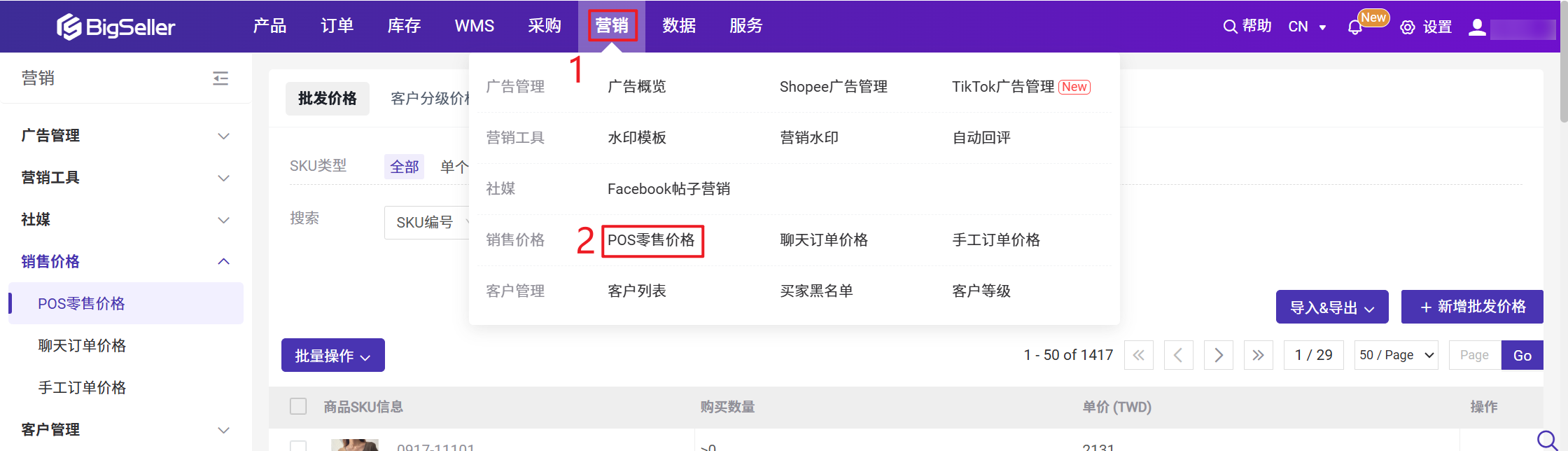 1、单价默认取【营销>POS销售价格】页面对应商品SKU的单价,若未维护POS销售价格则价格为空。