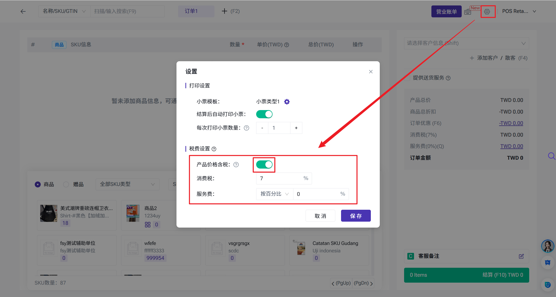 可设置开启产品价格含税