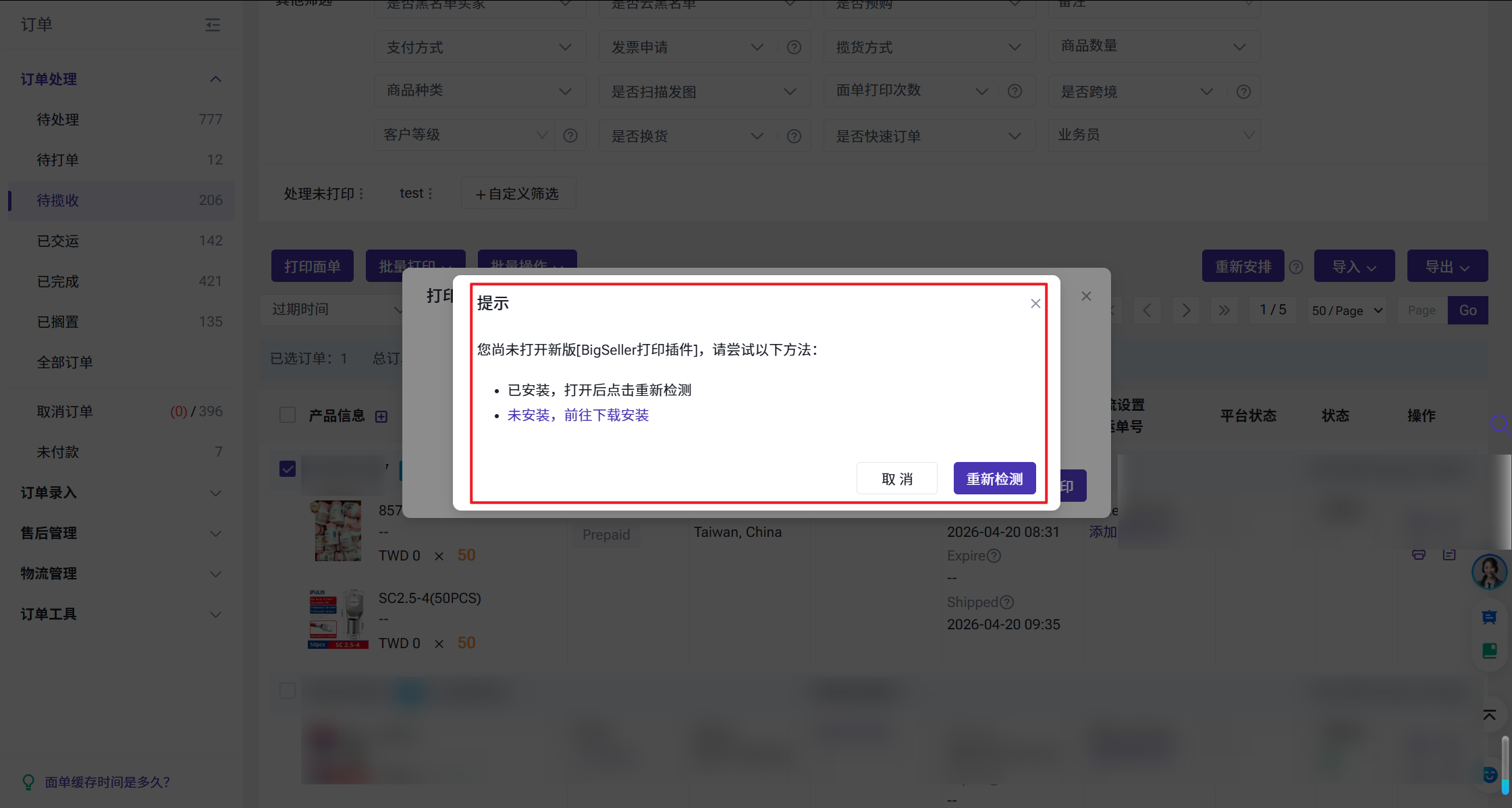 - 方案一:检查面单是否有正常推送到打印机