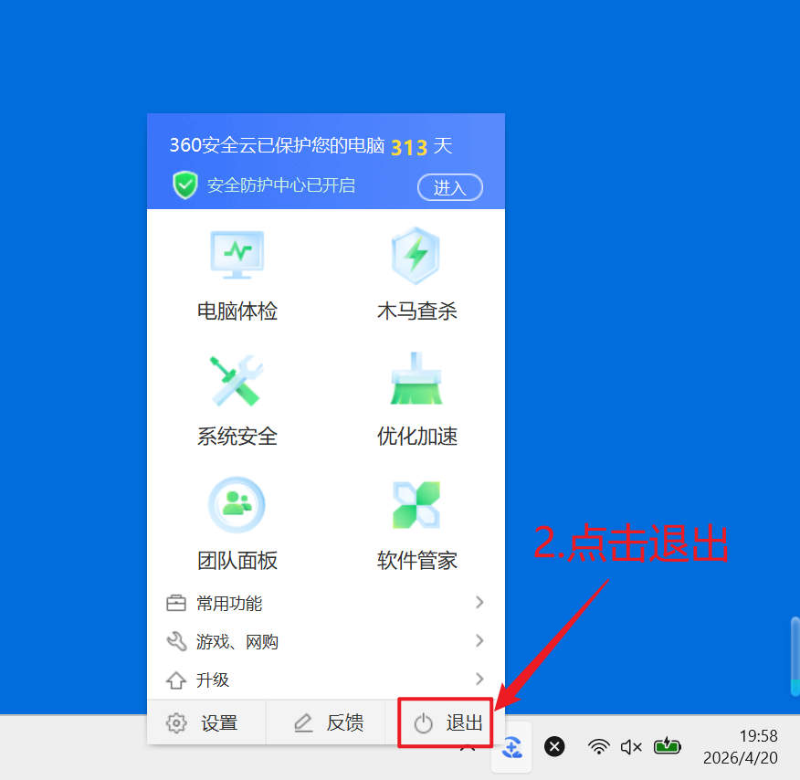 2、如何关闭安全软件(如360)