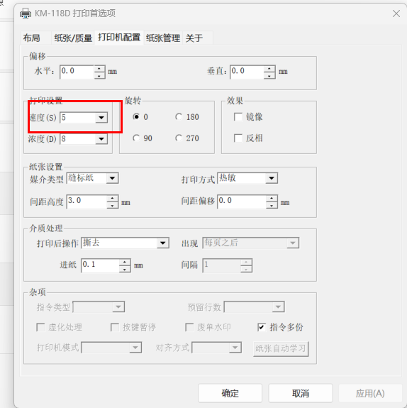 找到打印机首选项-》打印机配置-》打印设置,将打印速度调高